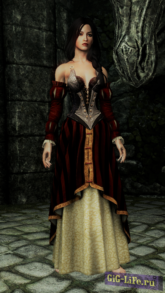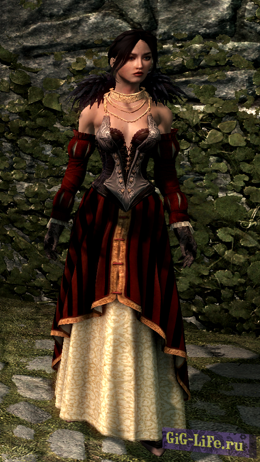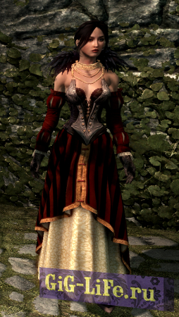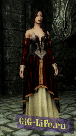 Добавляет довольно ЛОРное платье интриганки для женских персонажей в Skyrim. Платье можно скрафтить, требует кожи и кожаных полосок. Только для тел CBBE. Платье идет одним предметом.