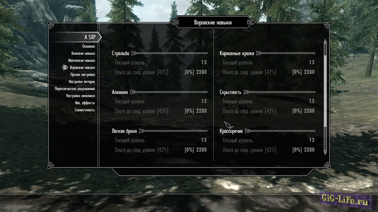 Если вы хотите пользоваться «гибридной» системой прокачки (совмещать систему прокачки SXP и ванильную), то вам придётся самостоятельно поменять нижеследующие изменения на такие значения, какие нужны именно вам.