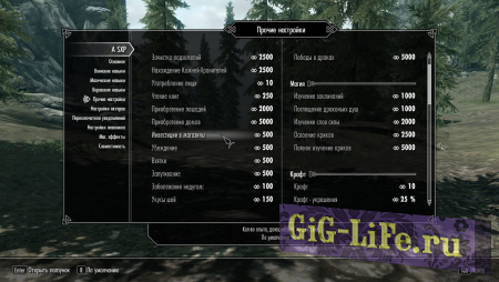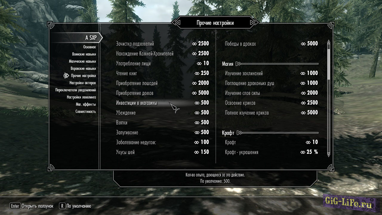 Вкладка «Прочие настройки»: отрегулируйте кол-во получаемого опыта ото всех действий, исключая убийство актёров;
