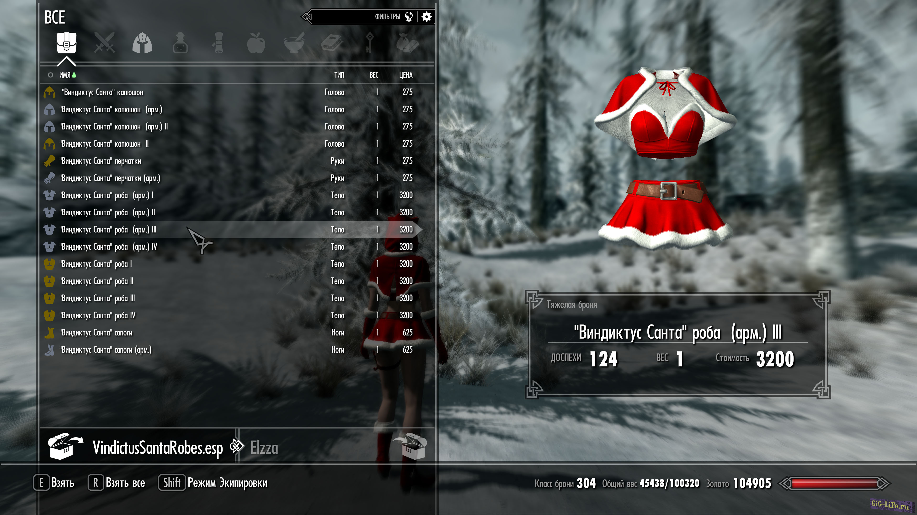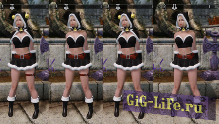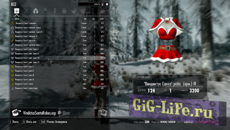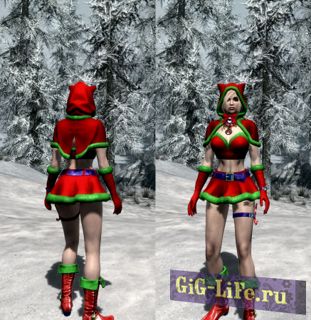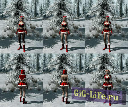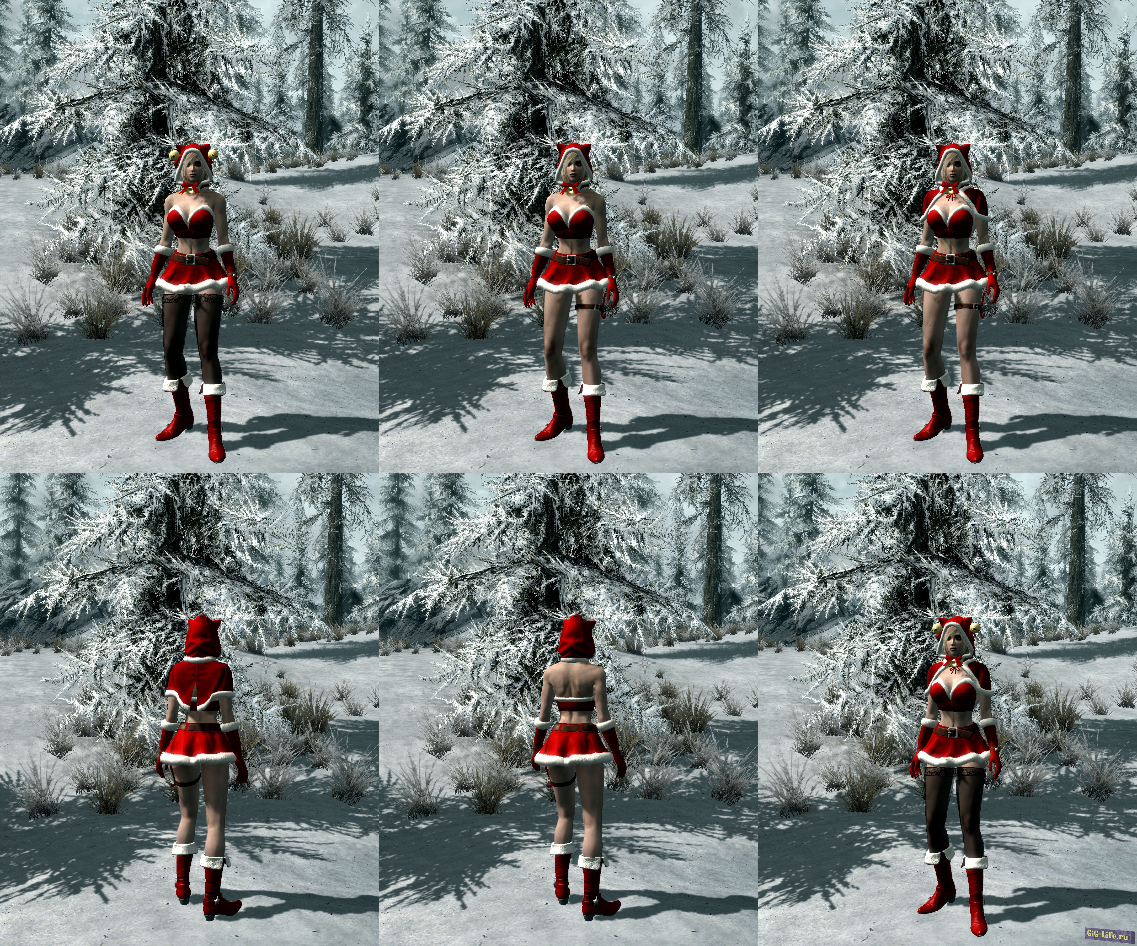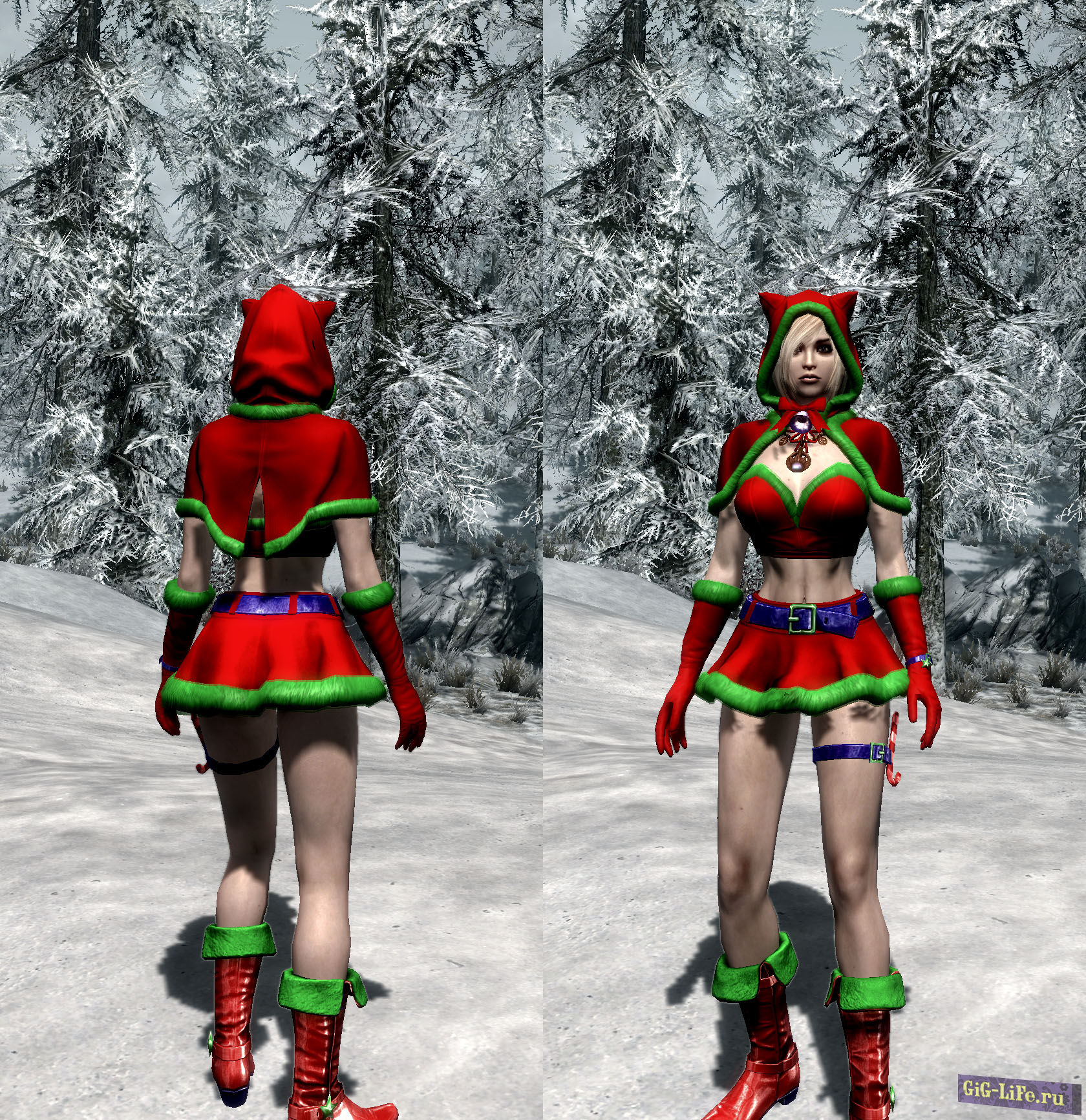 В преддверии Нового года хочу представить вашему вниманию соответствующий наряд для вашей дамы - одеяние снегурочки. Мод добавляет в игру Рождественскую броню "Виндиктус Санта" для реплейсеров тел СВВЕ и 7В и опциональную папку с текстурами с пятью видами расцветок, скрафтить все это можно в разделе Драконье и Даэдрическое, требования - система ношения высоких каблуков HDT HHS.