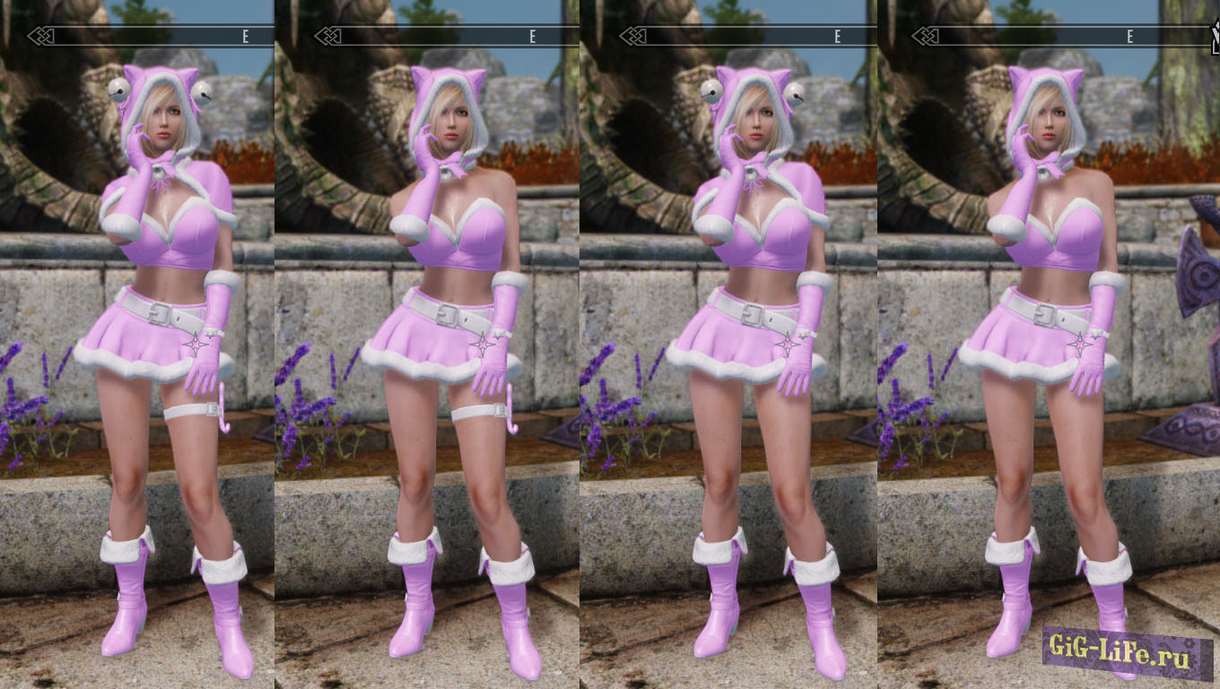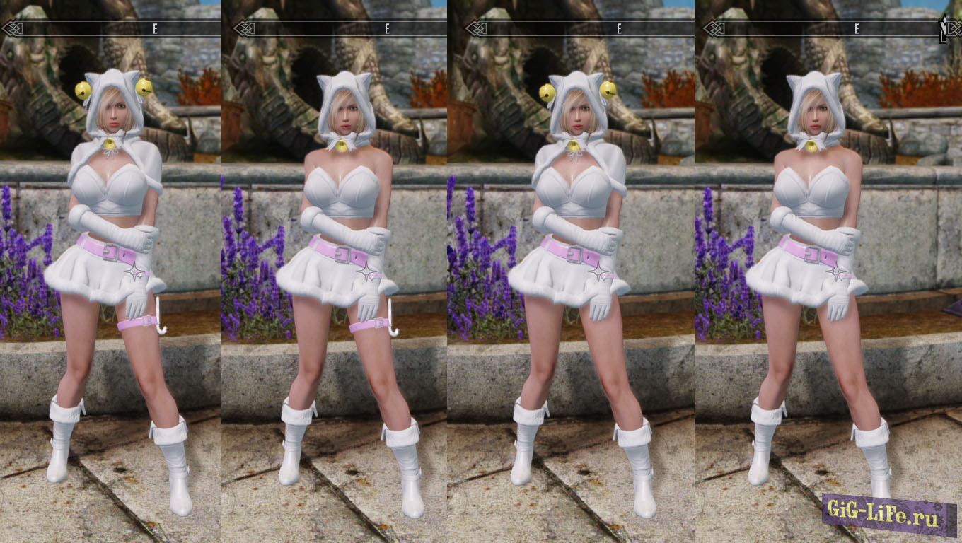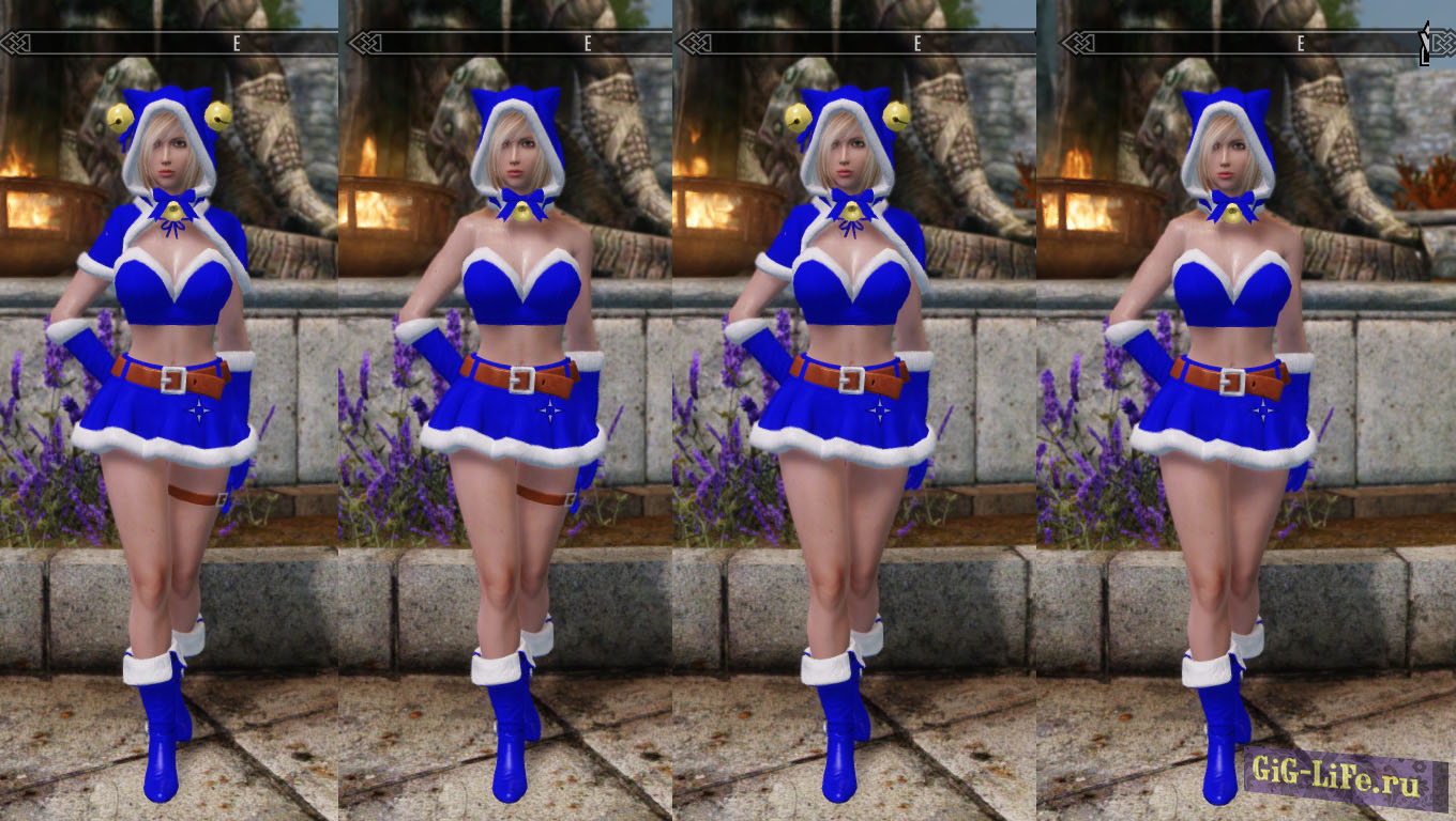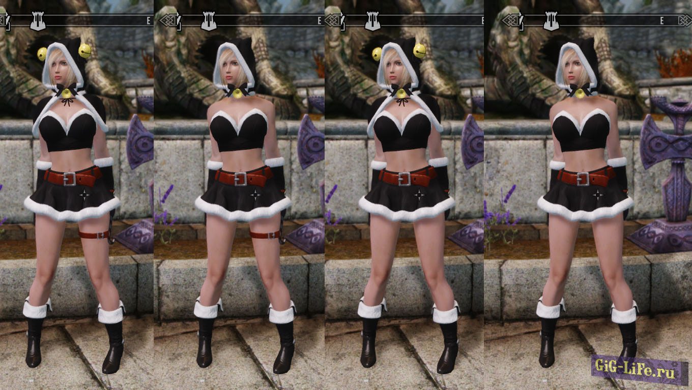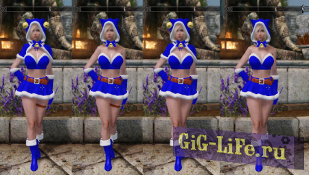 В преддверии Нового года хочу представить вашему вниманию соответствующий наряд для вашей дамы - одеяние снегурочки. Мод добавляет в игру Рождественскую броню "Виндиктус Санта" для реплейсеров тел СВВЕ и 7В и опциональную папку с текстурами с пятью видами расцветок, скрафтить все это можно в разделе Драконье и Даэдрическое, требования - система ношения высоких каблуков HDT HHS.
