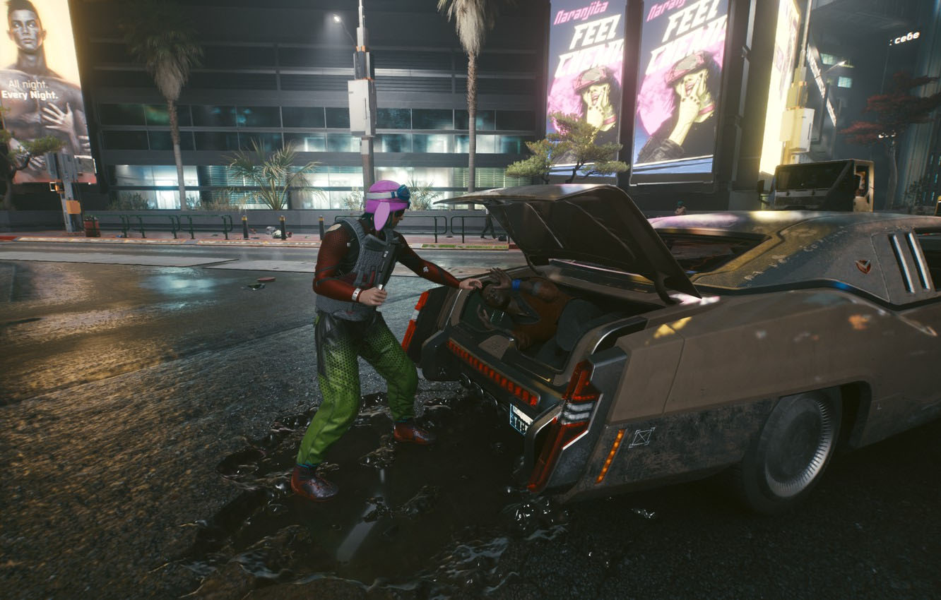 - На улице можно встретить NPC, ведущих беседу друг с другом на разных языках — всё благодаря имплантам.