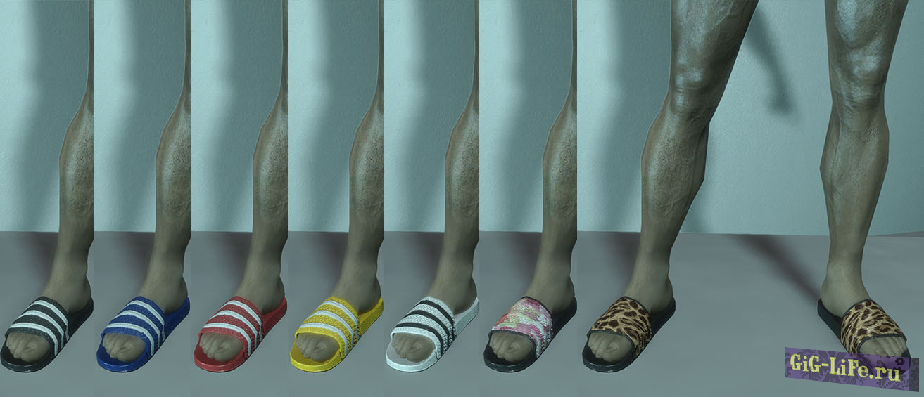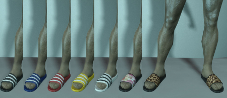 Пак из 7 тапочек для Skyrim, которые подходят как для мужских персонажей, так и для женских. Отличия в 7 вариантах лишь в окраске.