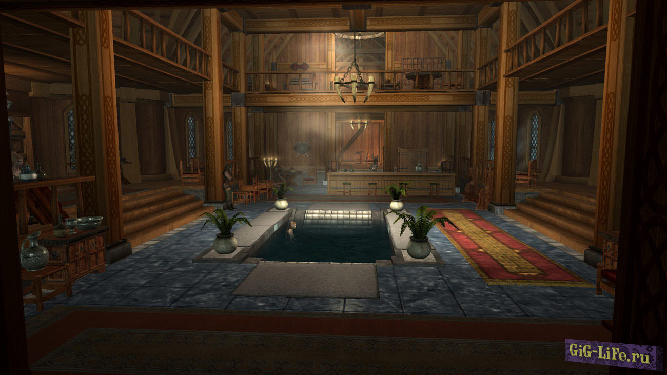 - Весь Люкс принадлежит только вам. И вы распоряжаетесь им как хотите. Здесь есть всё для жизни: Бард, таверна, спальня, сейфы, охранник, бассейны, Всё для крафта, отдельная комната со стойками и манекенами.