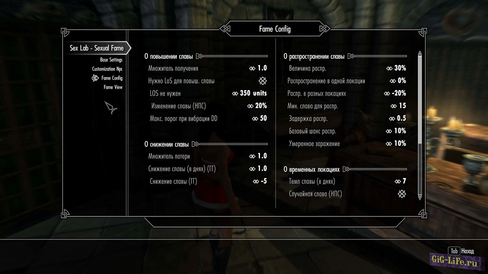 Думаете, что ваша ГГ может заниматься различными развратными действиями без последствий для себя? Ха, как бы не так. Этот мод вводит в игру сексуальную славу или известность. Она складывается из разных факторов, действий, экипировки и т. д.