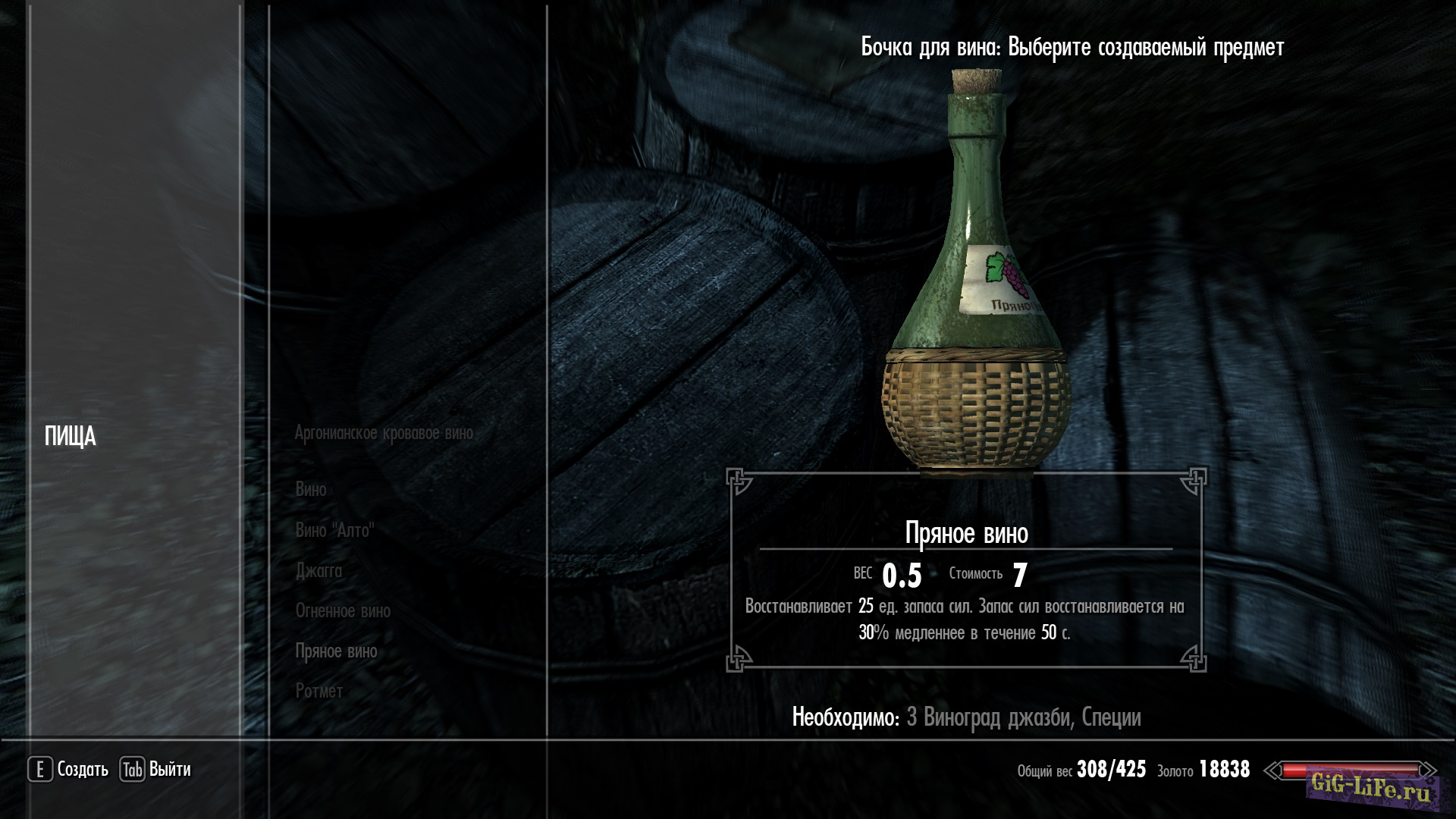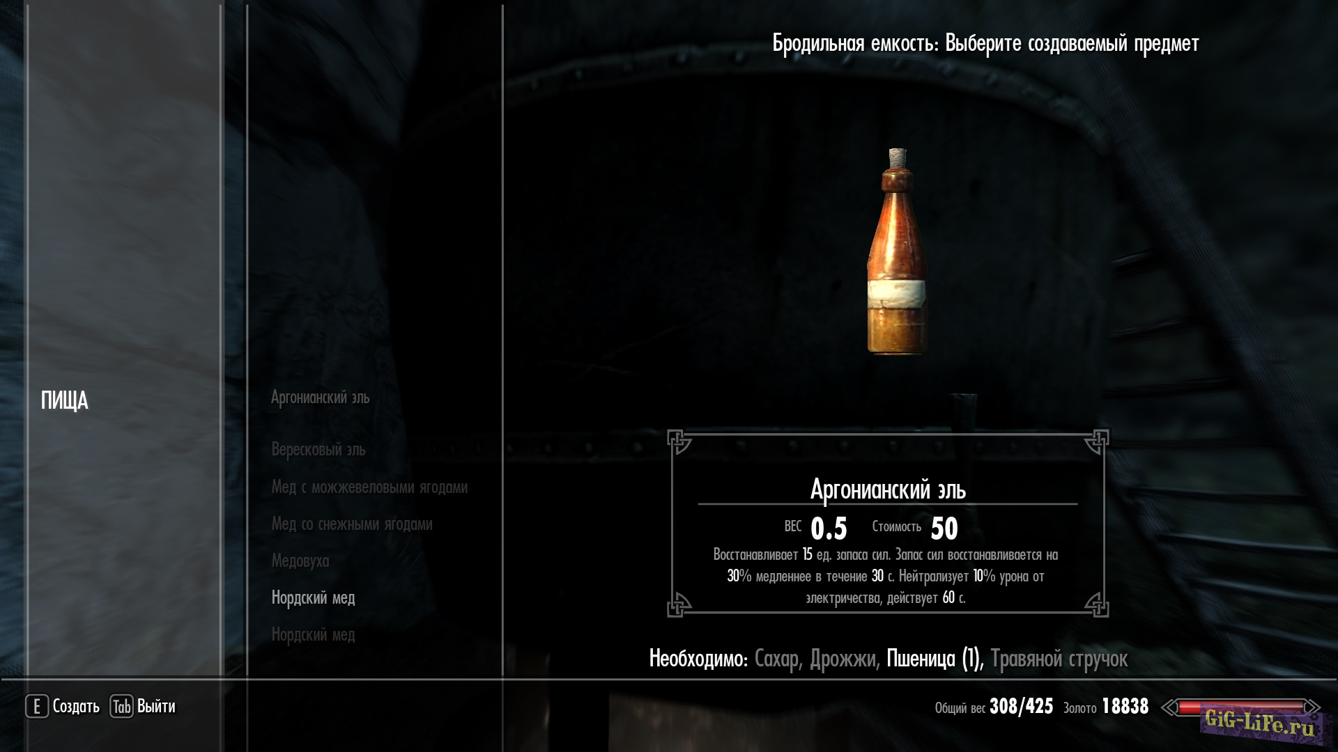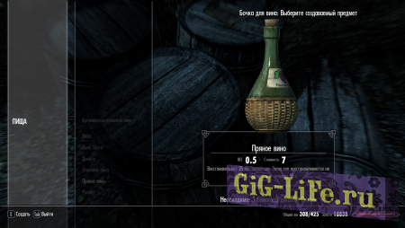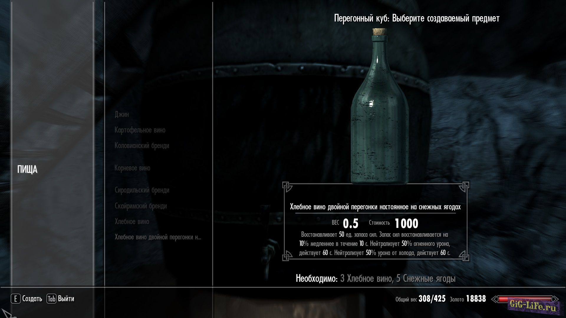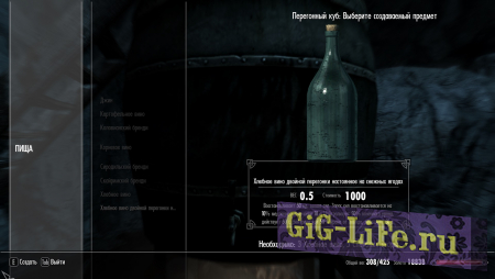 Собственно все уже сказано в кратком описании. С помощью перегонного куба, бродильной емкости и бочки для вина, вы сможете производить практически все виды выпивки которые есть в Скайриме (кроме меда Хоннинга, черновереского меда и отборного черноверского меда), плюс несколько придуманных лично мной. Вы даже сможете производить джаггу и ротмет. Также, часть уникальных напитков можно купить в тавернах Скайрима (кроме Рифтена).
