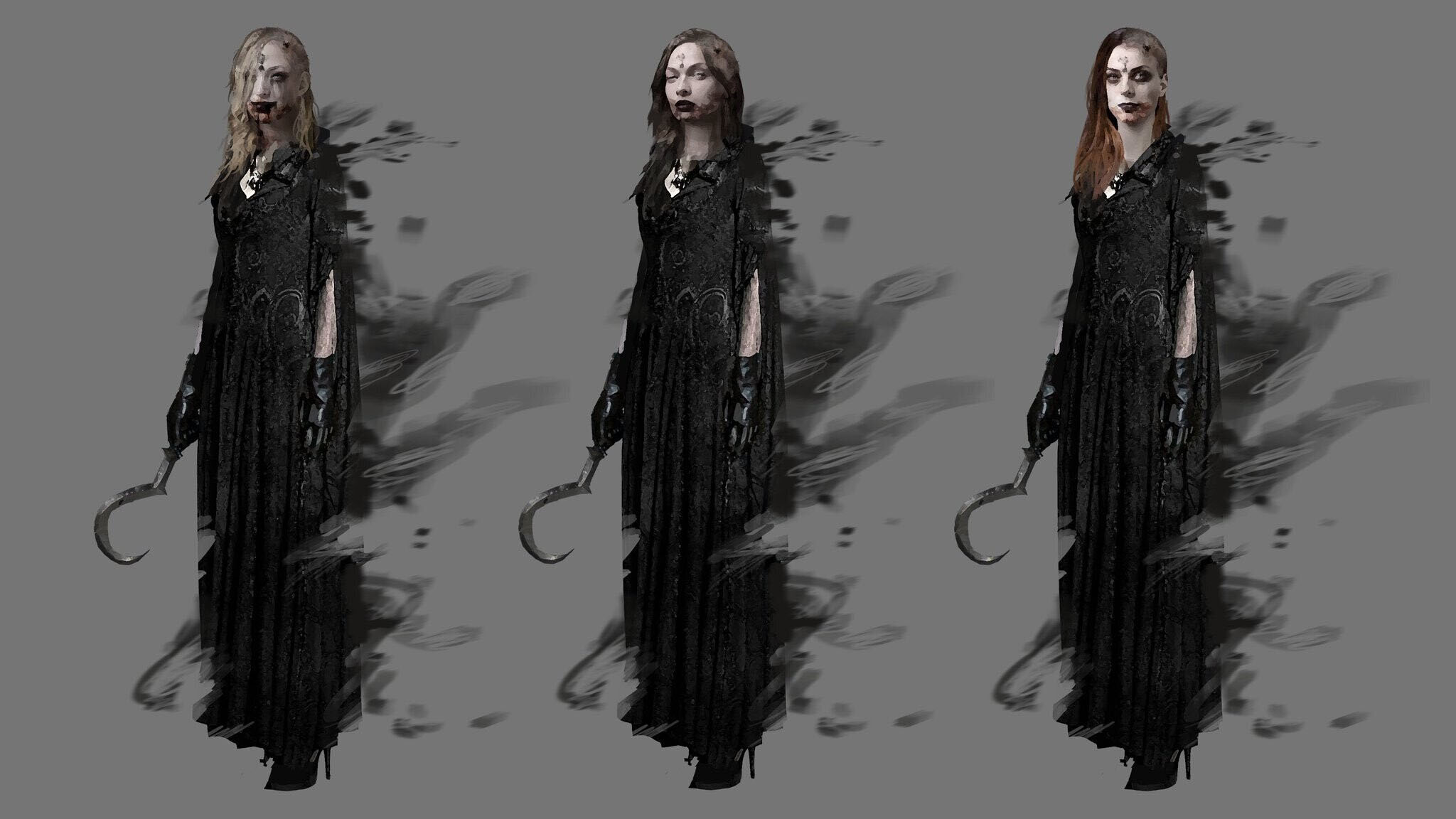 «Я думал, что этого будет достаточно, чтобы придать ей вид призрака, но мы не могли заставить её быть угрожающей. Затем мы решили сделать модель персонажа гораздо больше. Это было началом леди Димитреску. Я нарисовал концепт-арт, на котором она наклоняется, чтобы пройти через дверной проём. Именно тогда я ощутил, что это сработает».