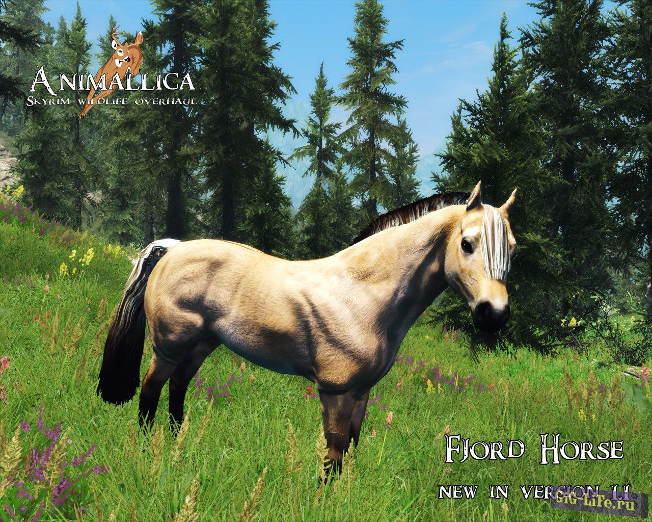 Данный мод добавляет в мир Скайрим и на просторы Скайрима более 100 новых видов животных и различных подвидов, все новые животные добавлены в левел списки и будут респаунится. Все животные будут обитать в тех местах, где они и должны быть, например бобры будут встречаться в водных областях, олени в лесах, носороги на просторных полях и так далее.