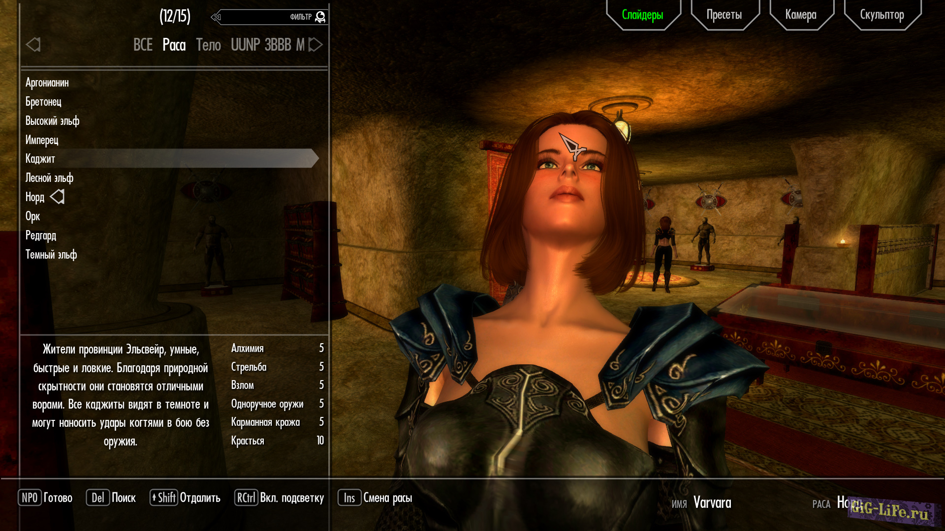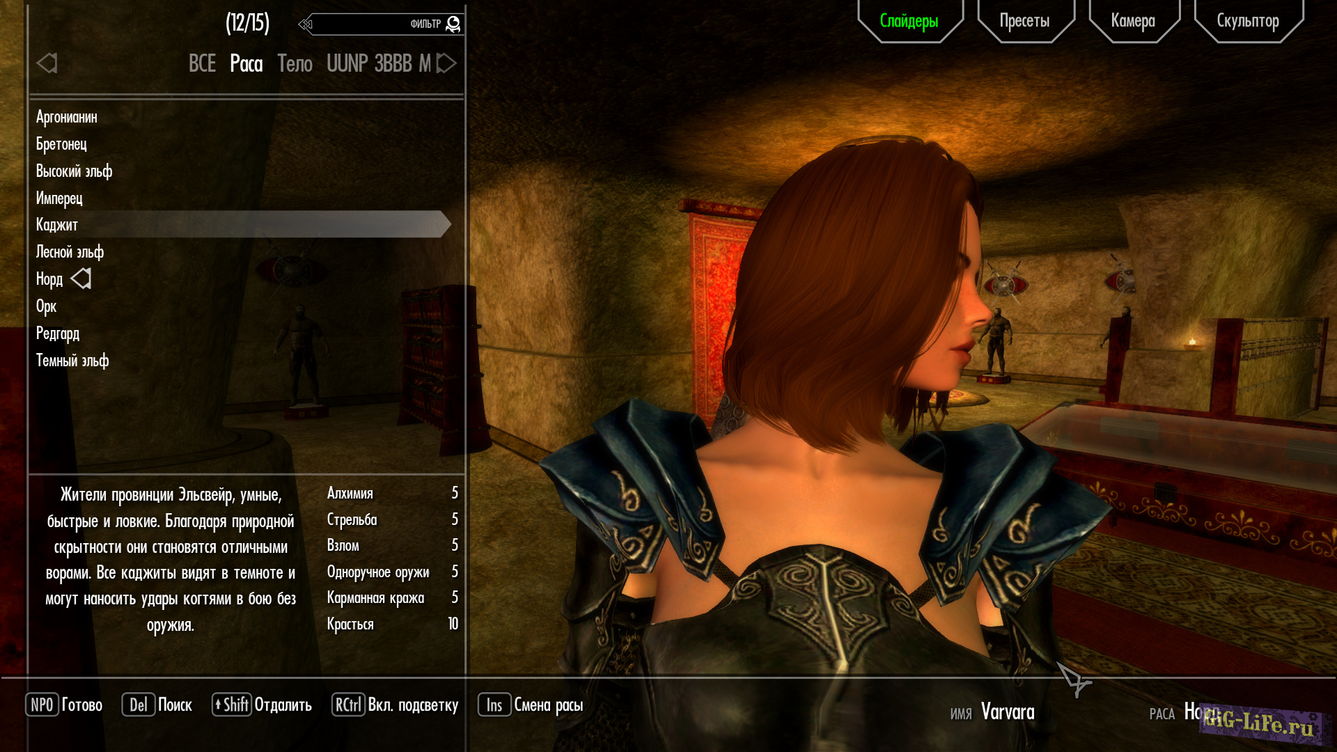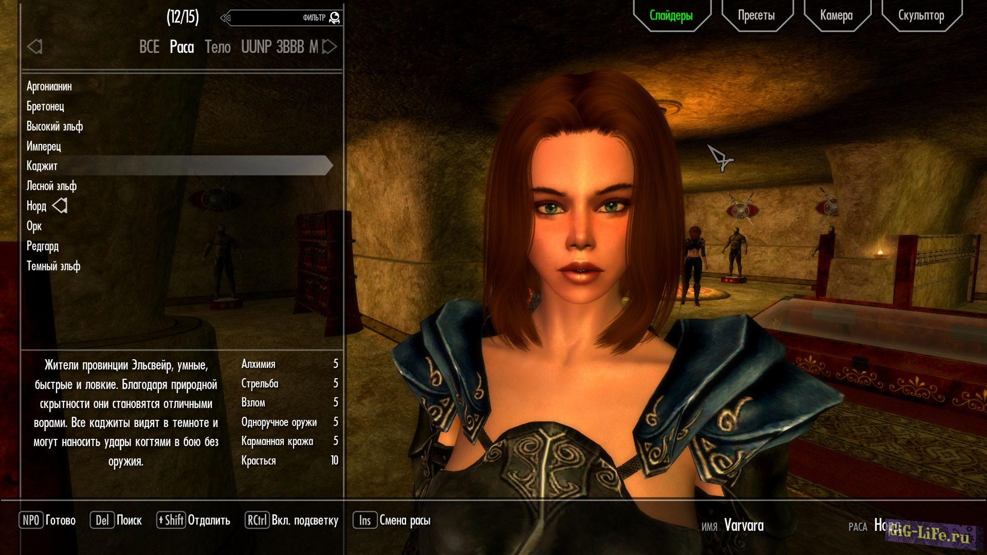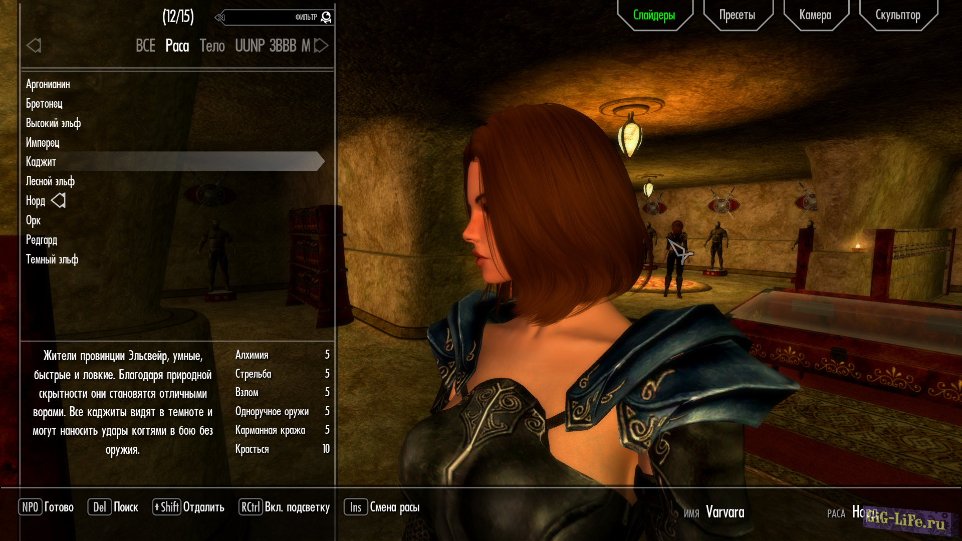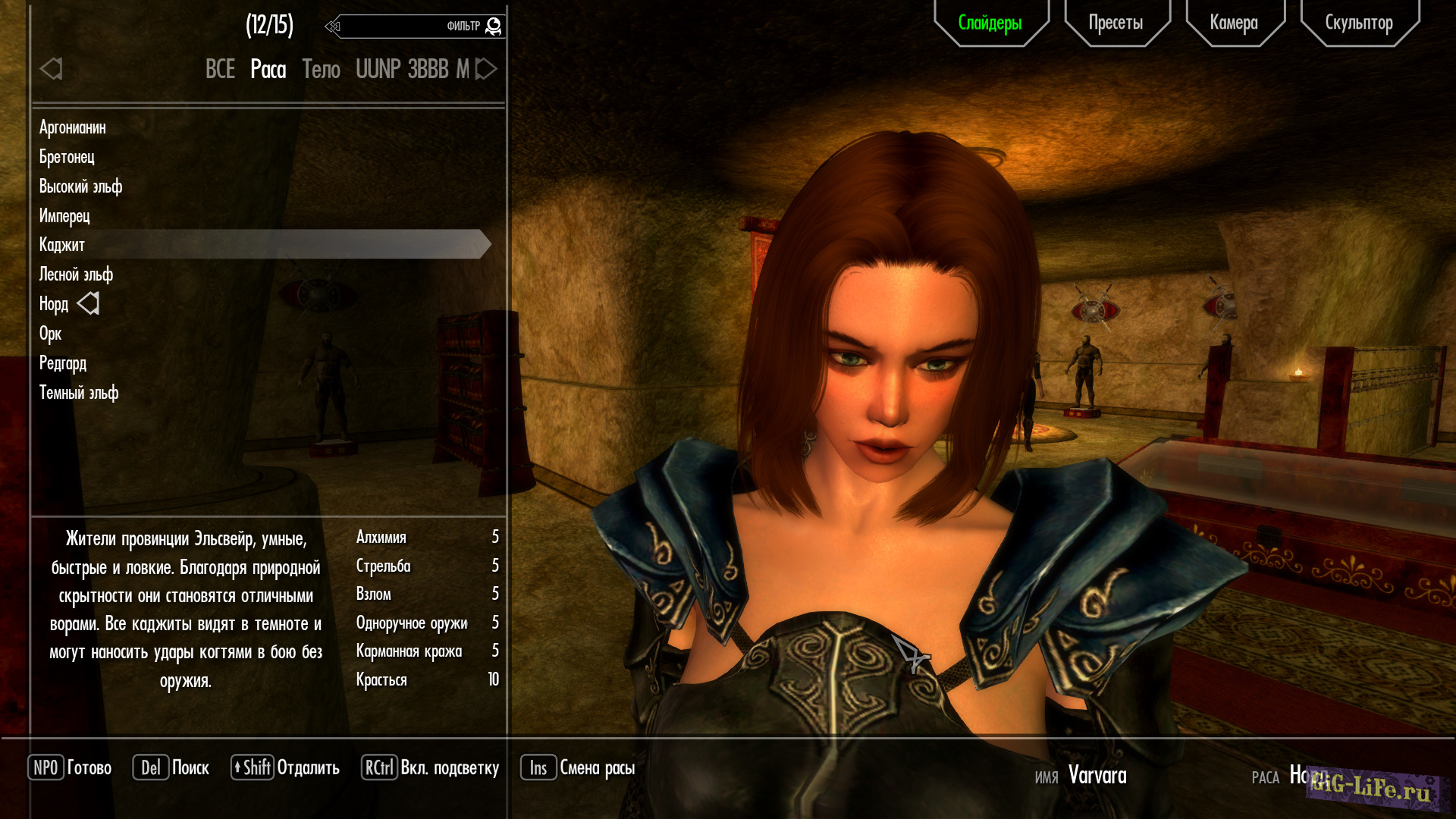 - Загрузите файл предустановки VARVARA_V5.jslot в data / skse / plugins / CharGen / presets.
