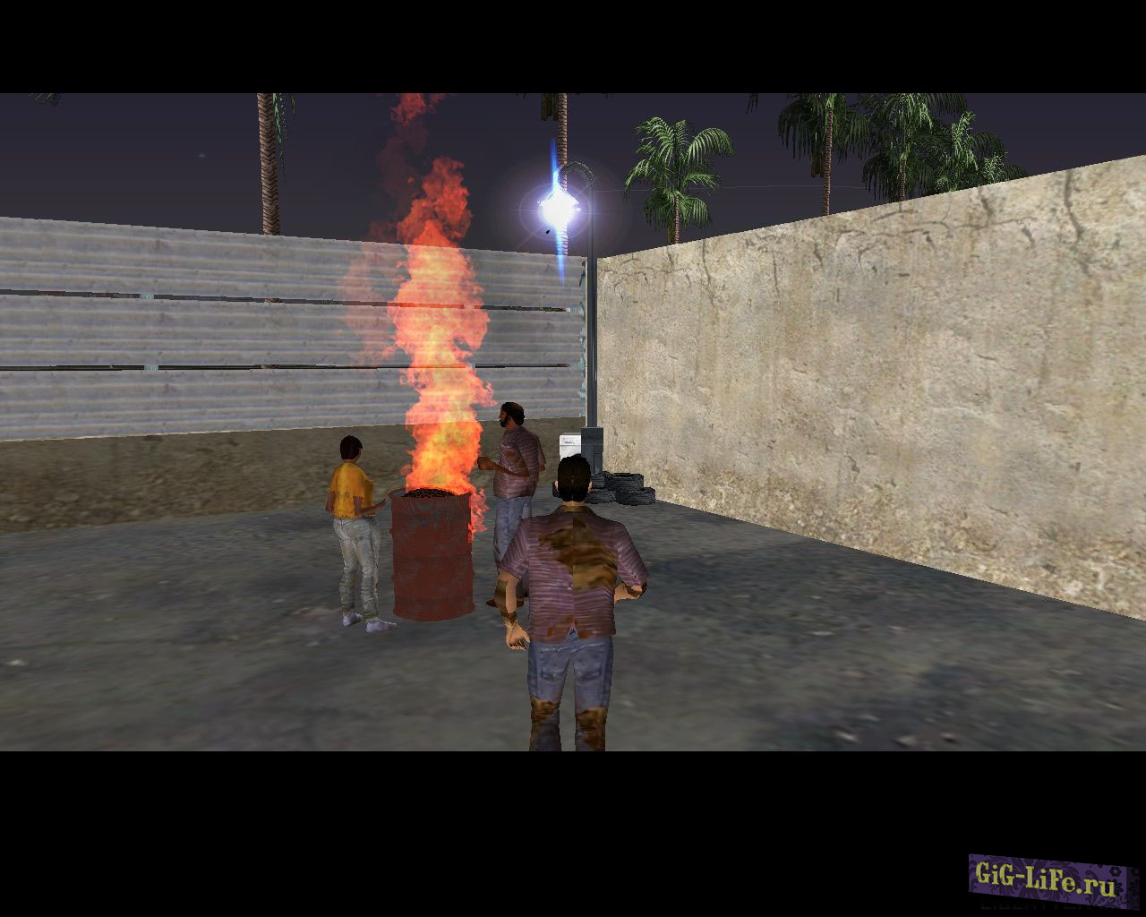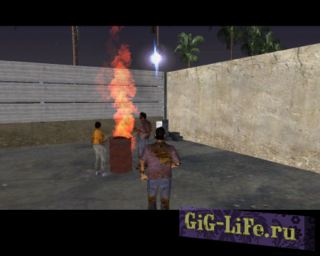 Это достаточно простой мод, который добавляет в район Littile Haiti небольшое здание с магазинами, банками и прочими предприятиями. И на заднем дворе этого здания расположен "Бомжатник". Там, среди мусорных баков и пустых коробок, стоят два бомжа и греются у горящей бочки.