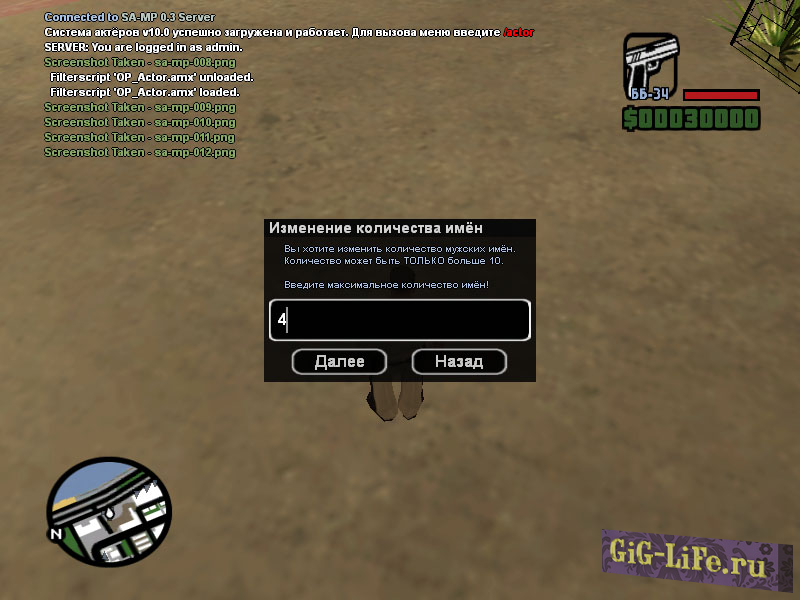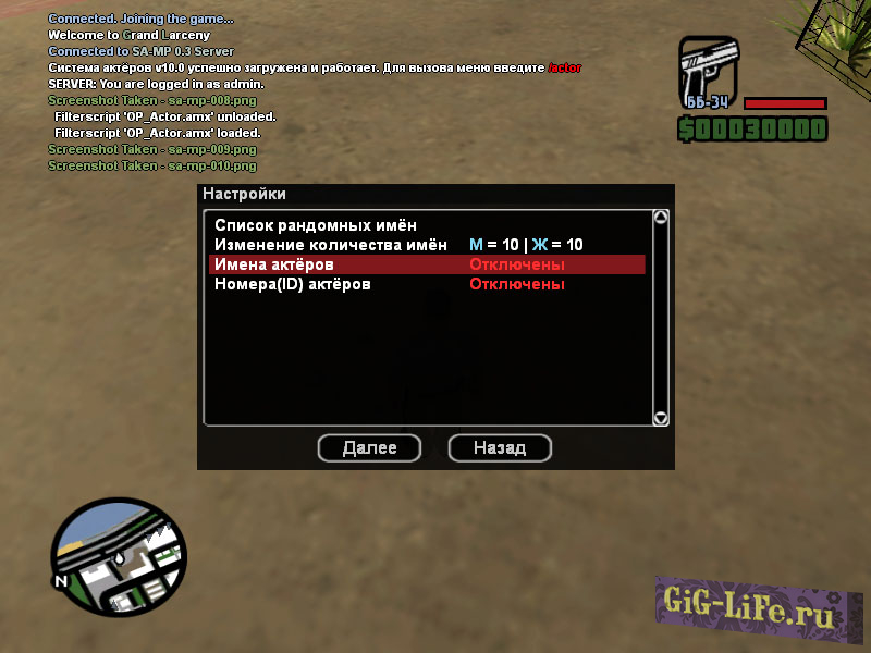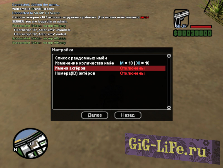 - /actor - открыть главное меню (доступно только после авторизации в RCON)