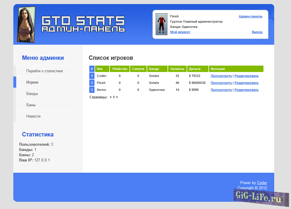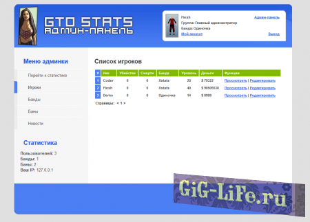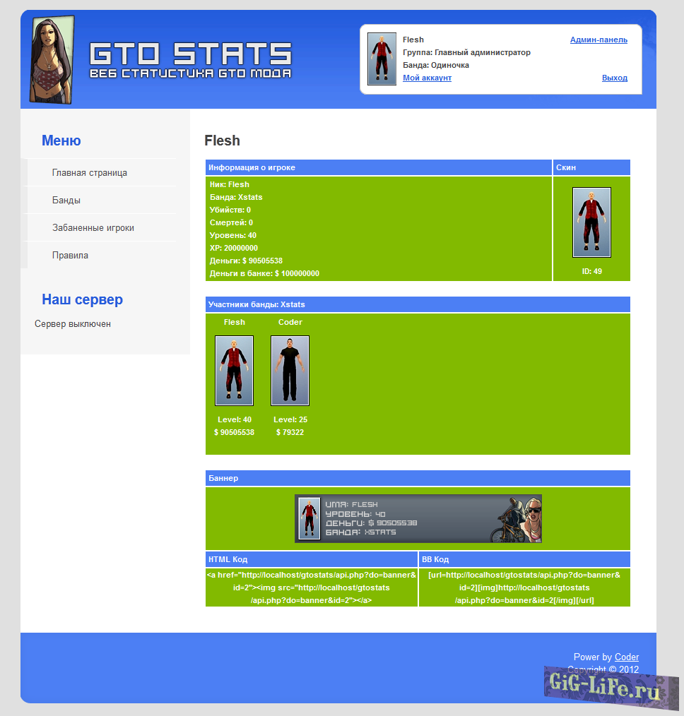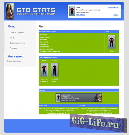 GTO Stats - это утилита для web-сайта с помощью которой можно вывести информацию о моде, игроках и данных сервера.