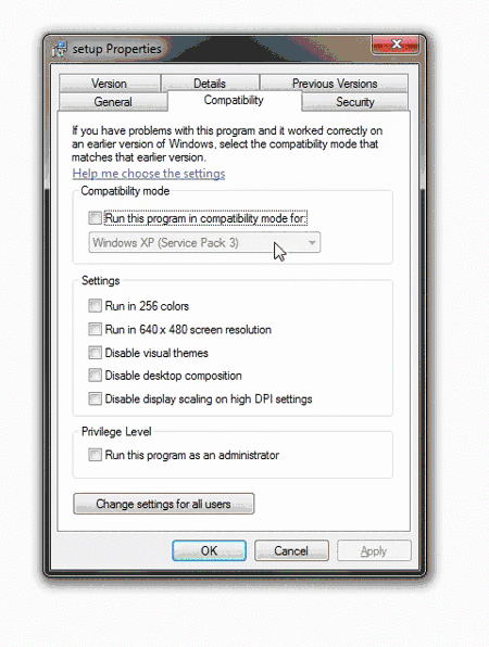 Запустите инсталлятор с правами, как показано на картинке (меню "Свойства" при нажатии правой кнопки мыши на файле):