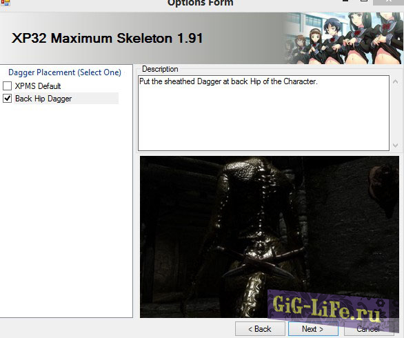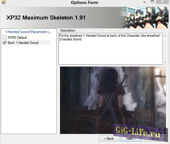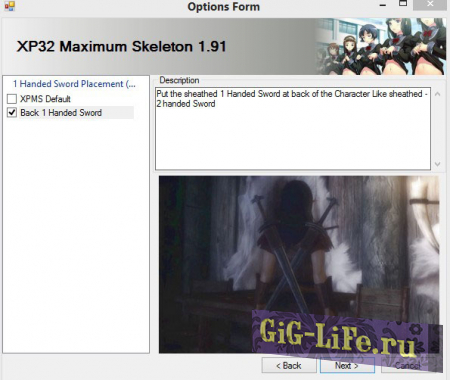 2.1. Устанавливаем скелет XP32 Maximum Skeleton v1.95 согласно инструкции. Ориентируясь по картинкам установщика, выберите новое положение оружия.