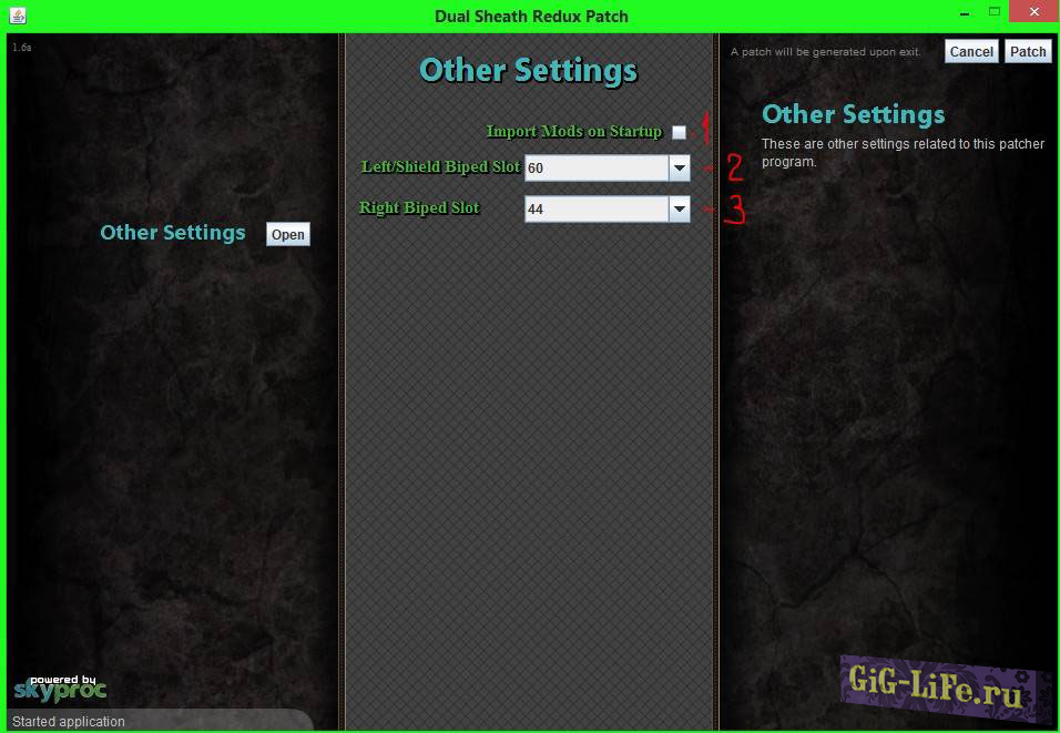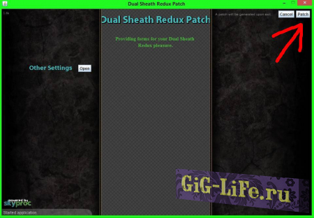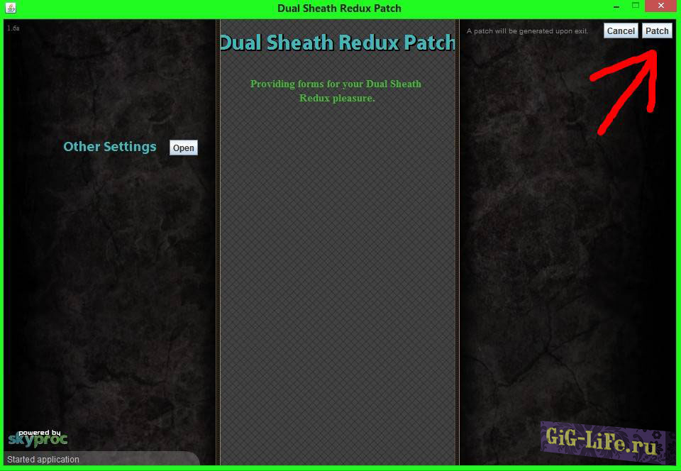 4.4. Запускаем патчер по адресу DATA\SkyProc Patchers\Dual Sheath Redux Patch\ Dual Sheath Redux Patch.jar. Жмём кнопку Patch в углу, ждём.