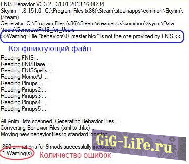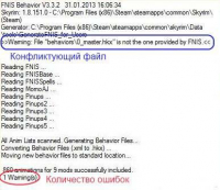 - Окно FNIS появится, только если FNIS должен сообщить об ошибке или предупреждениях.