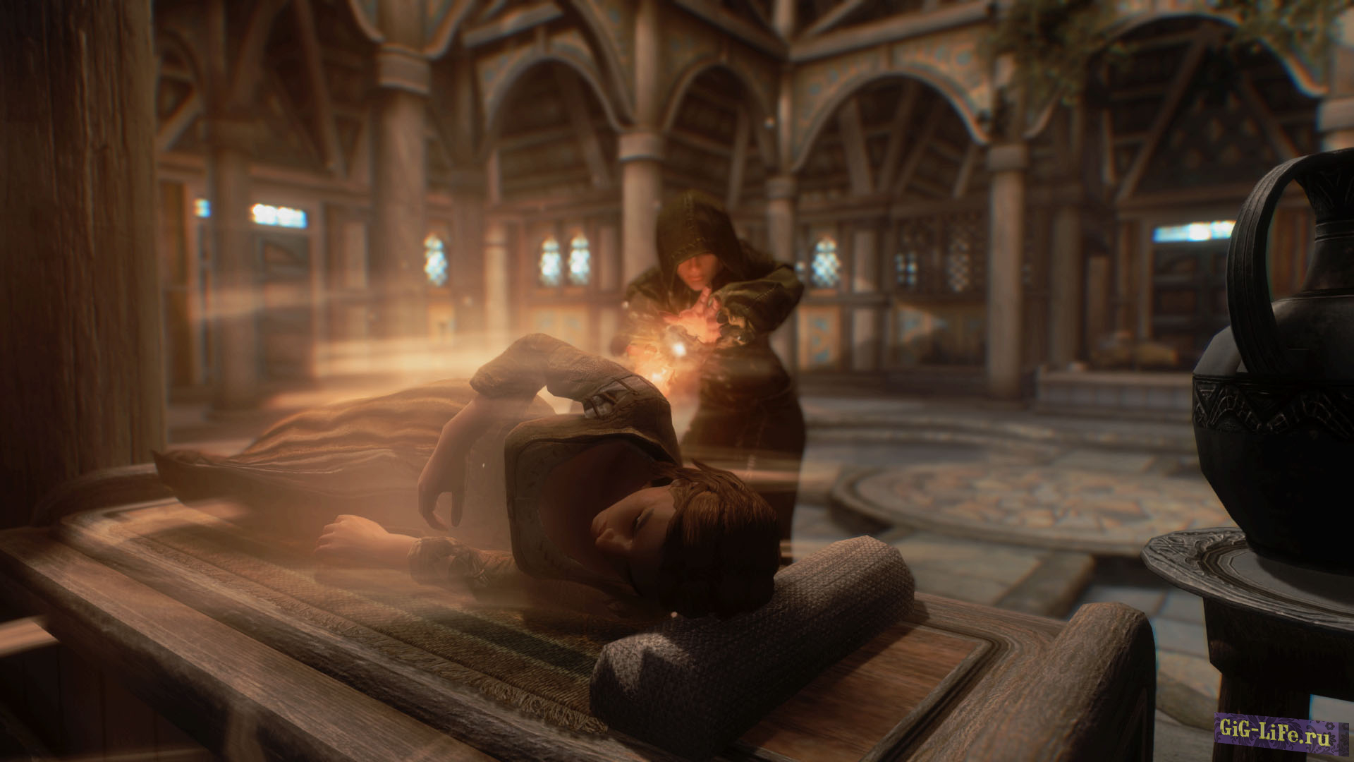 Безопасное место выбирается случайным образом и количество таких мест зависит от размера города, в котором живет NPC. Такими местами могут быть: дом NPC, храм, замок Ярла, шахта, казармы и т.д.