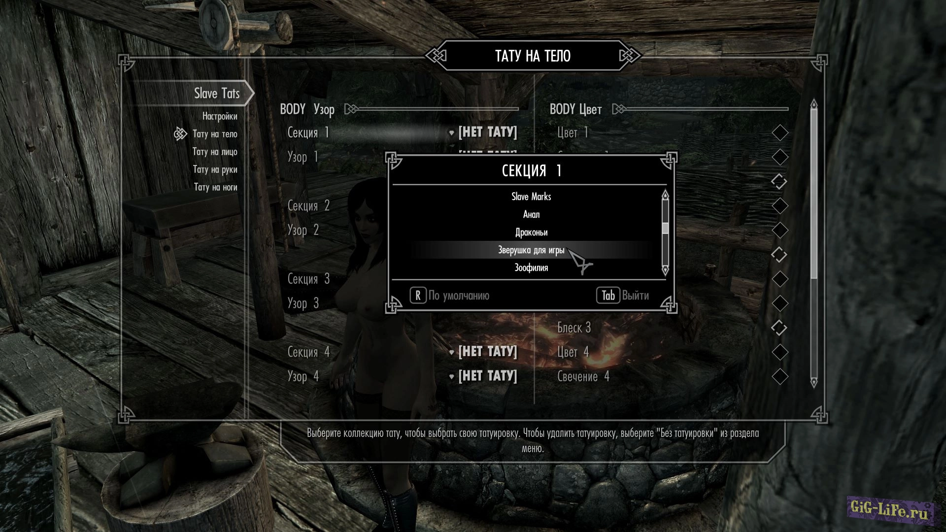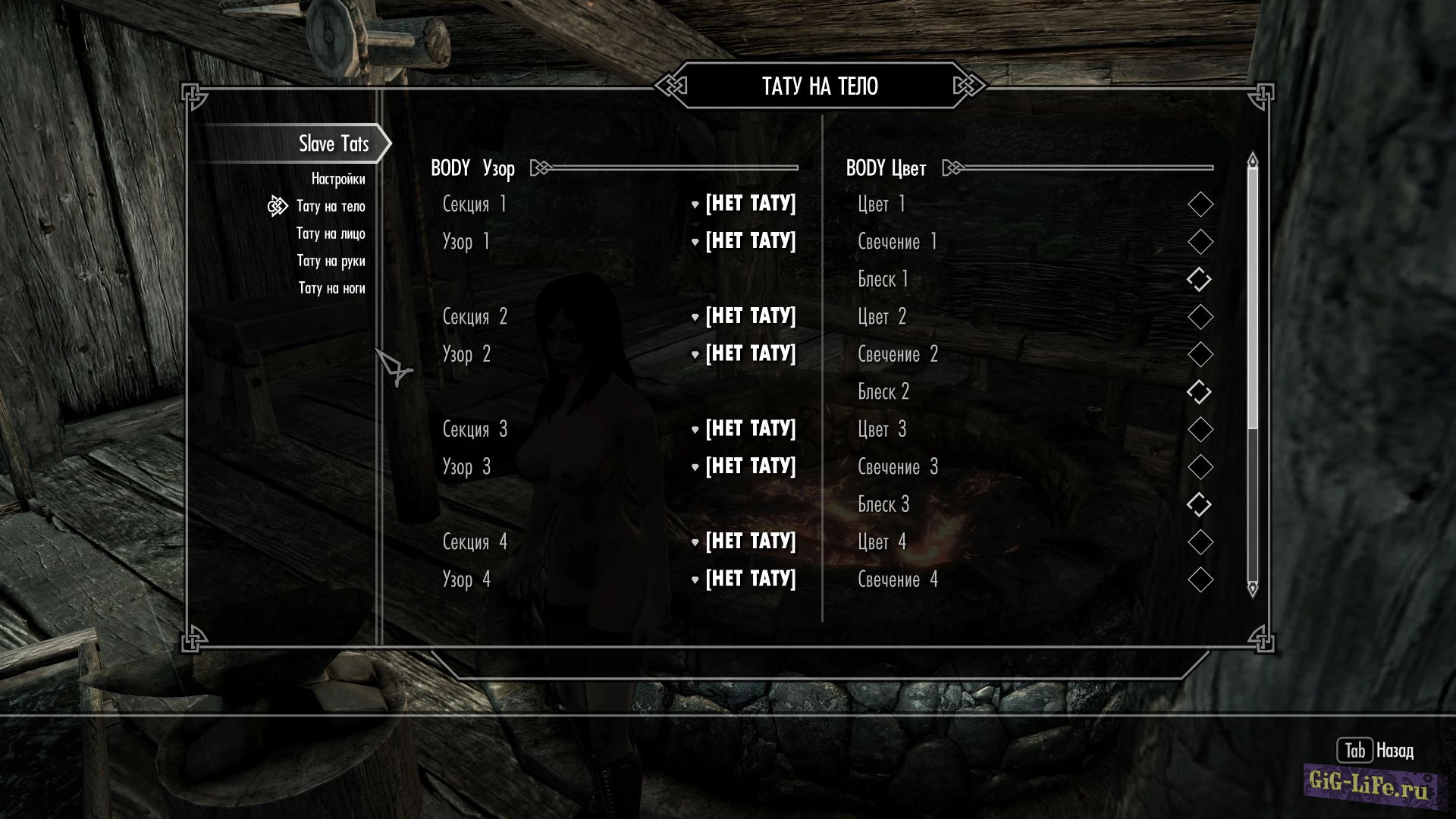 SlaveTats — этот очень полезный инструмент для любителей использовать татуировки, но позволит вам наносить любые тату на вашего персонажа или NPC, а так же менять их настройки.