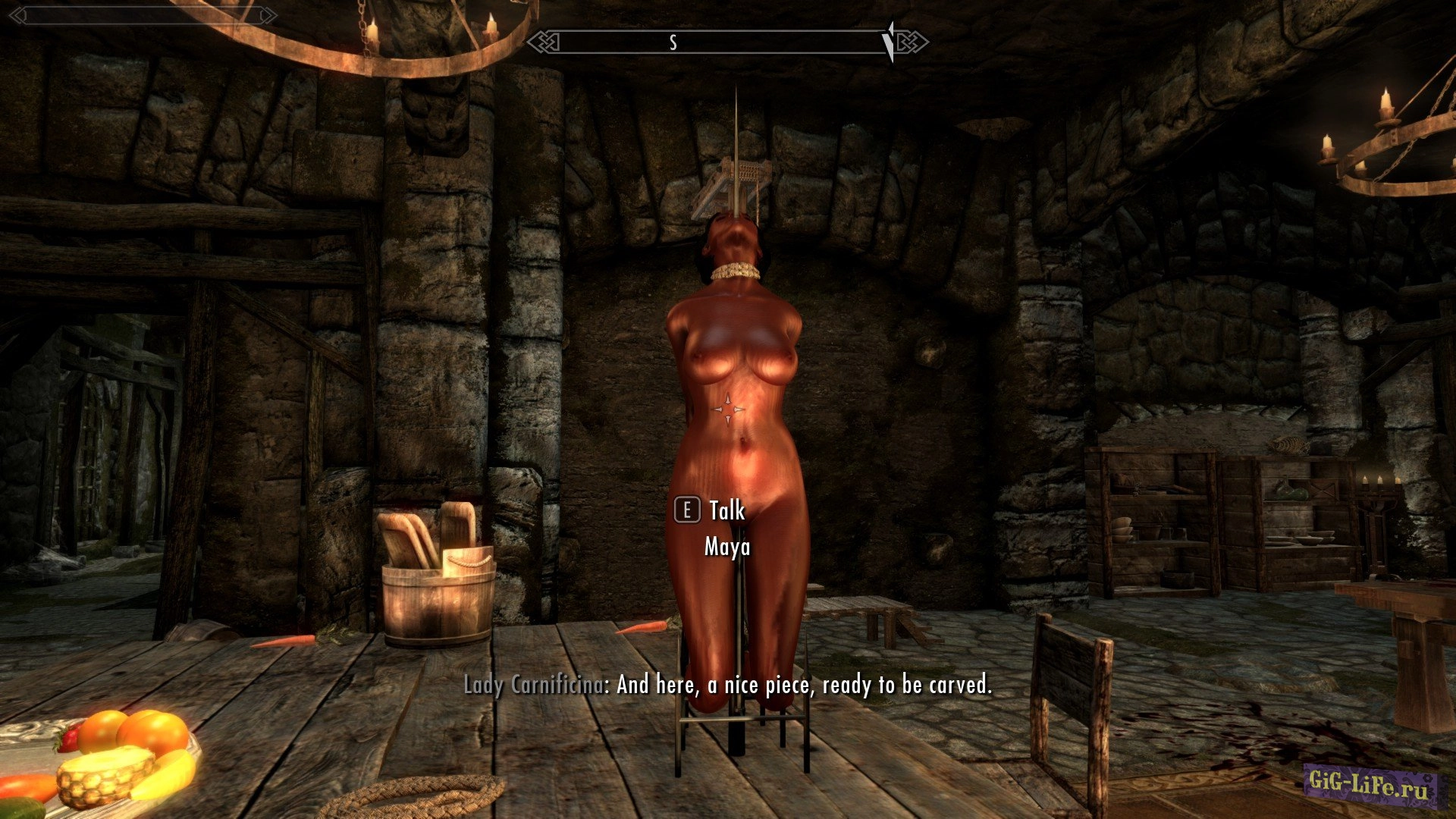 - Поговорить с Майей в таверне Рифтена или через мод simple slavery. ГГ на аукционе продают вампирше - каннибалу Карнифицине. ГГ выбирает: быть зажаренной живьем или служить Карнифицине. Ну а после идет по квестам
