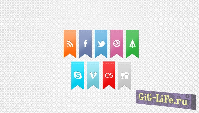 Симпатичные иконки социальных сетей на разноцветных ленточках.