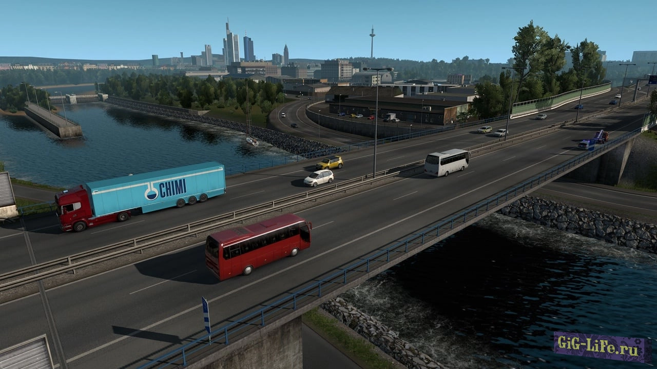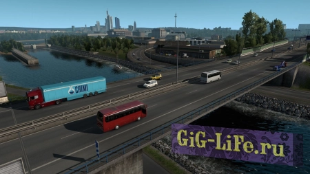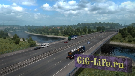 Играть по сети в Euro Truck Simulator 2 можно с другом, в одиночку или с рандомными людьми по интернету онлайн. На пиратке бесплатно представлены Скоростной режим и Симуляция. Каждый из них имеет свои особенности и тонкости в управлении грузовиком. Симулятор дальнобойщика позволяет перевозить многочисленные грузы по дорогам Великобритании, Бельгии, Германии, Италии, Нидерландов и Польши. Огромный упор игровой процесс на реалистичность вождения: выезд на главную дорогу, подавание знаков фарами, пропуск других машин, участие в пробках, снижение скорости за счет предоставленных дорожных знаков и т.п.