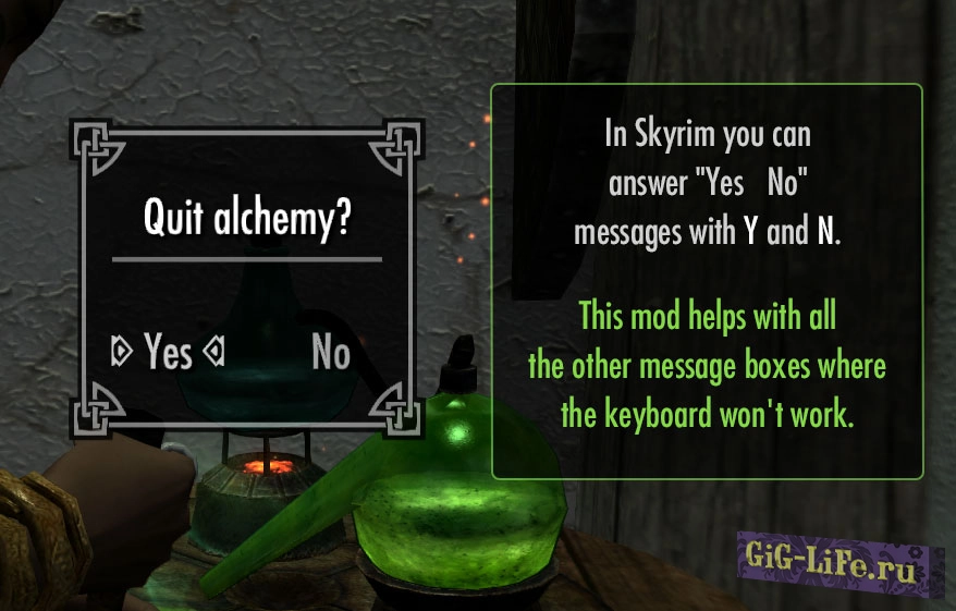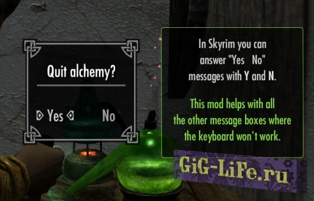 Данный мод позволит выбирать различные варианты всплывающих окон с помощью клавиатуры. Используйте стрелки влево/вправо (или A D ) и клавишу для активации (например: E) для выбора. Также исправлен размер области кнопки, чтобы её проще было выбрать указателем мыши.