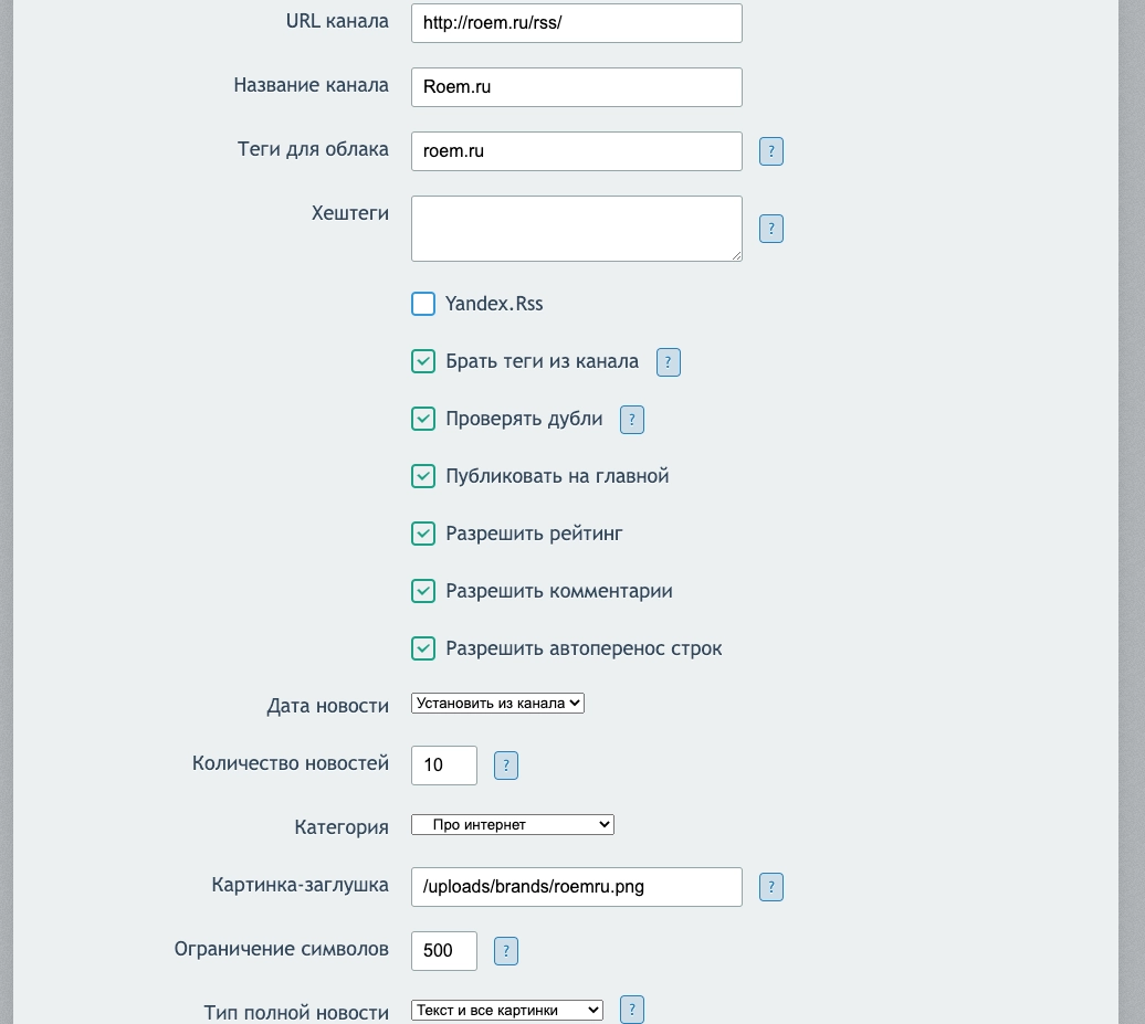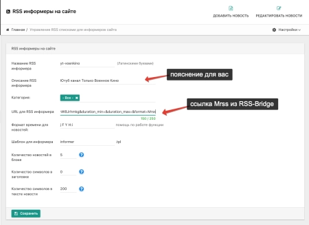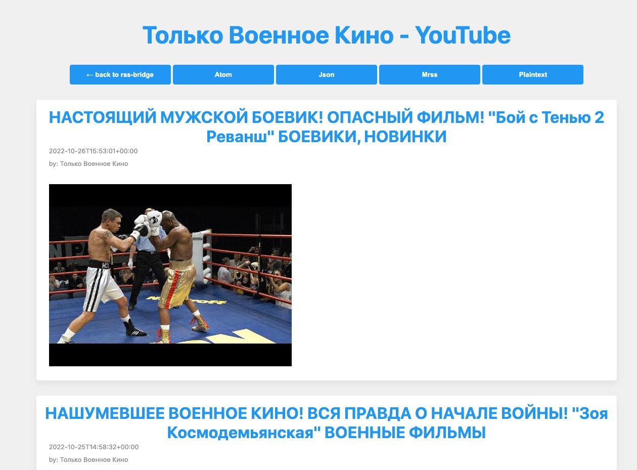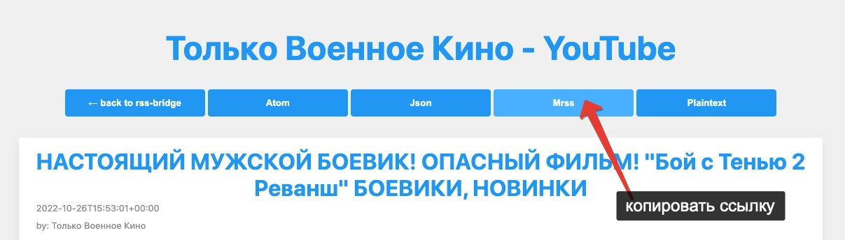 - Mrss: канал MRSS, для использования в читалках rss фидов