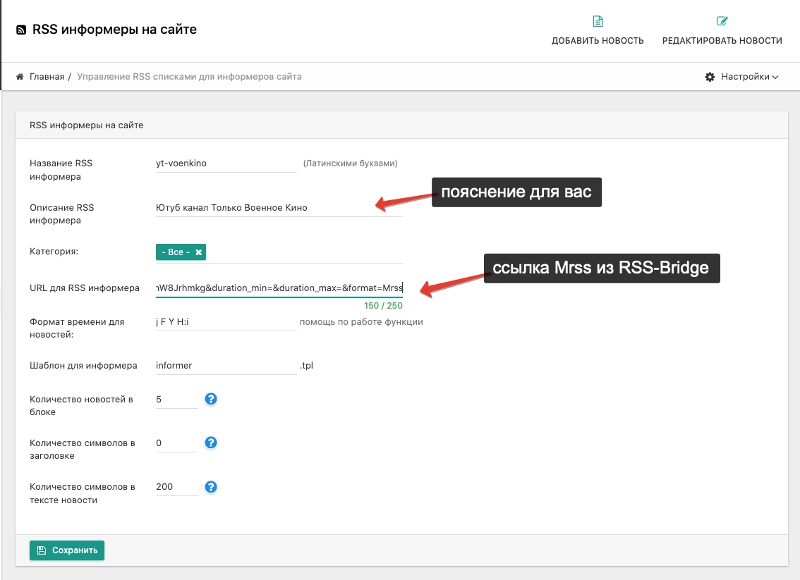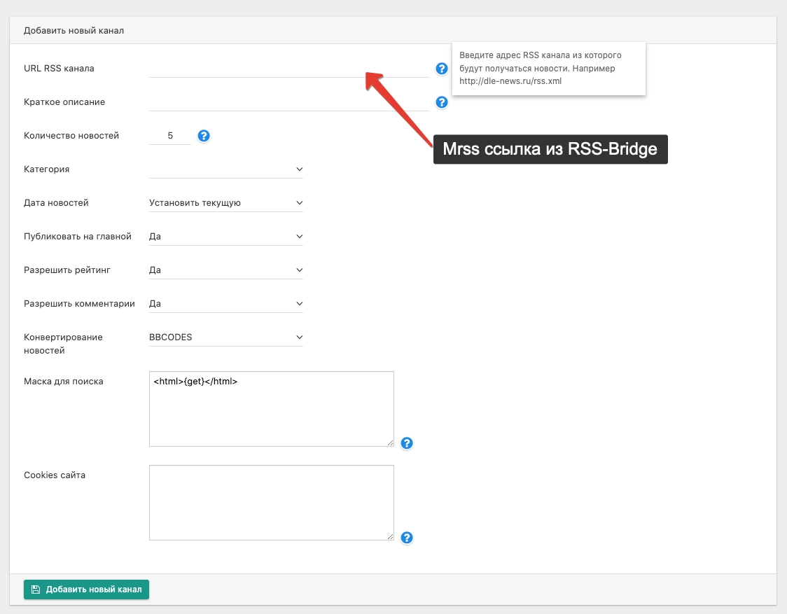Если все правильно, теперь можем получить ссылку на Mrrs для интеграции в наши RSS трансляции внутри DLE.