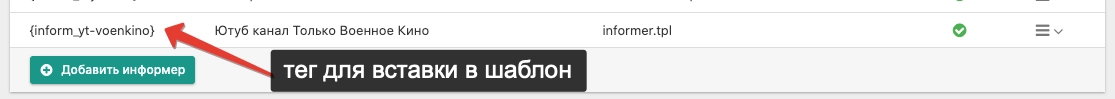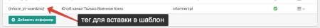 Получаем новый тег для вставки в шаблон сайта. Внешний вид RSS информера настраивается в файле шаблона {THEME}/informer.tpl