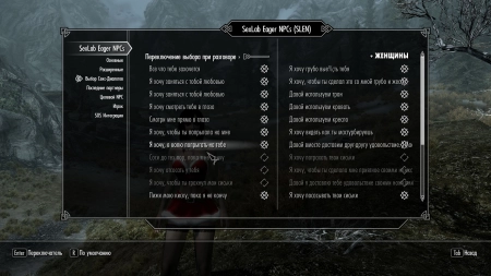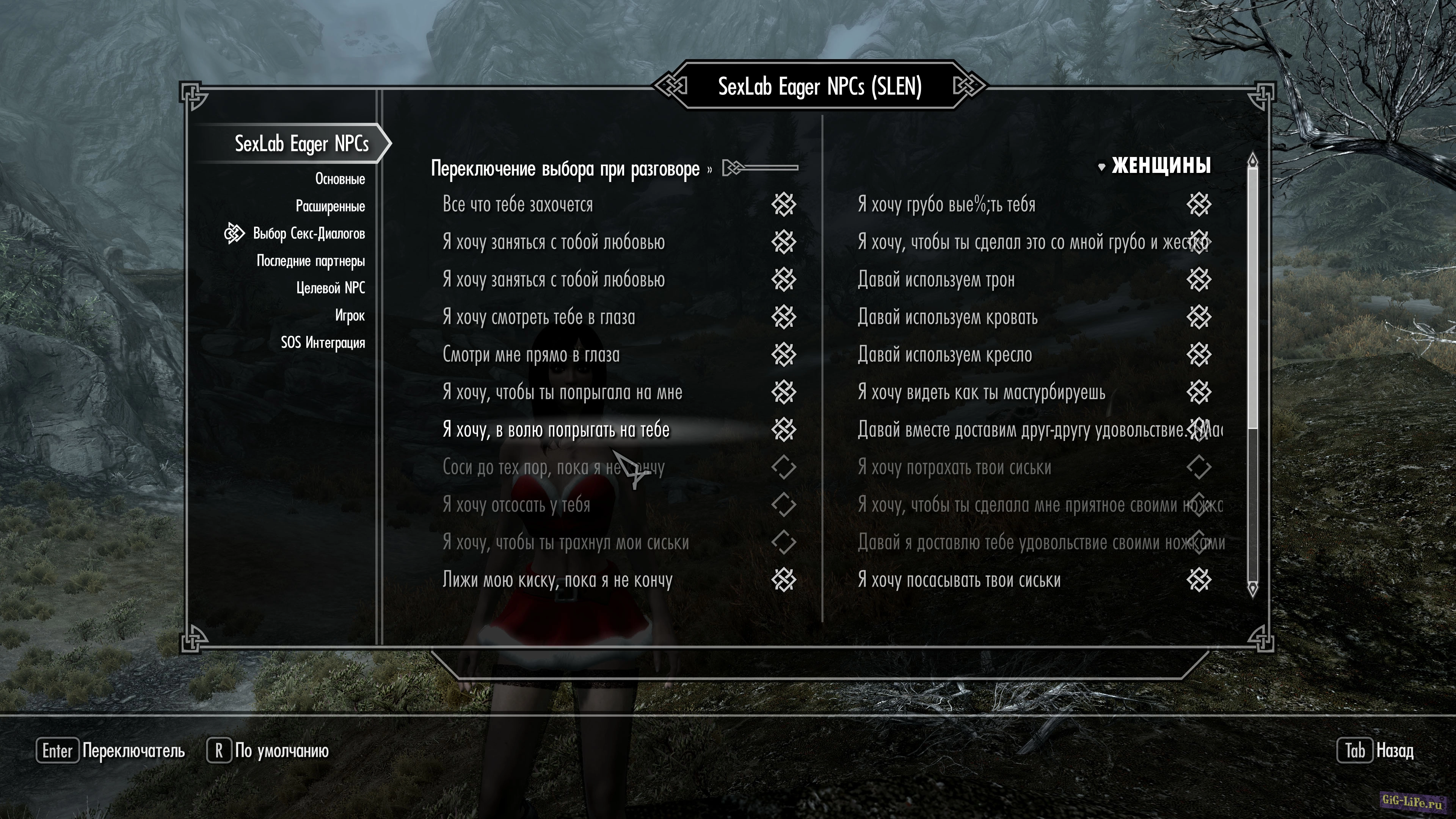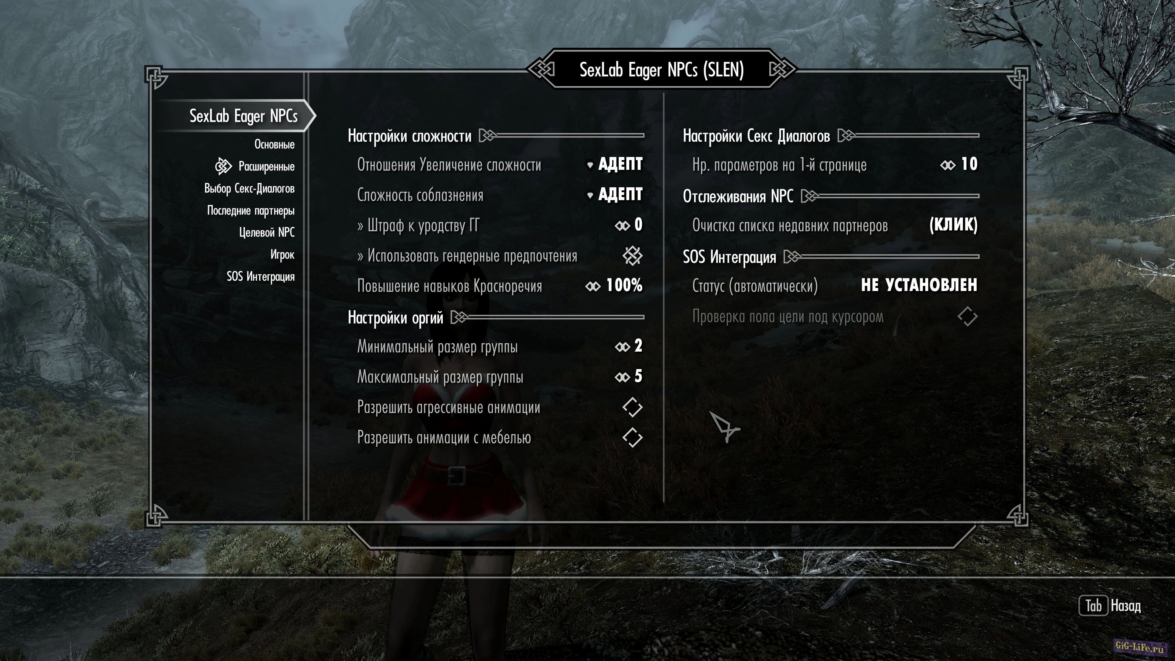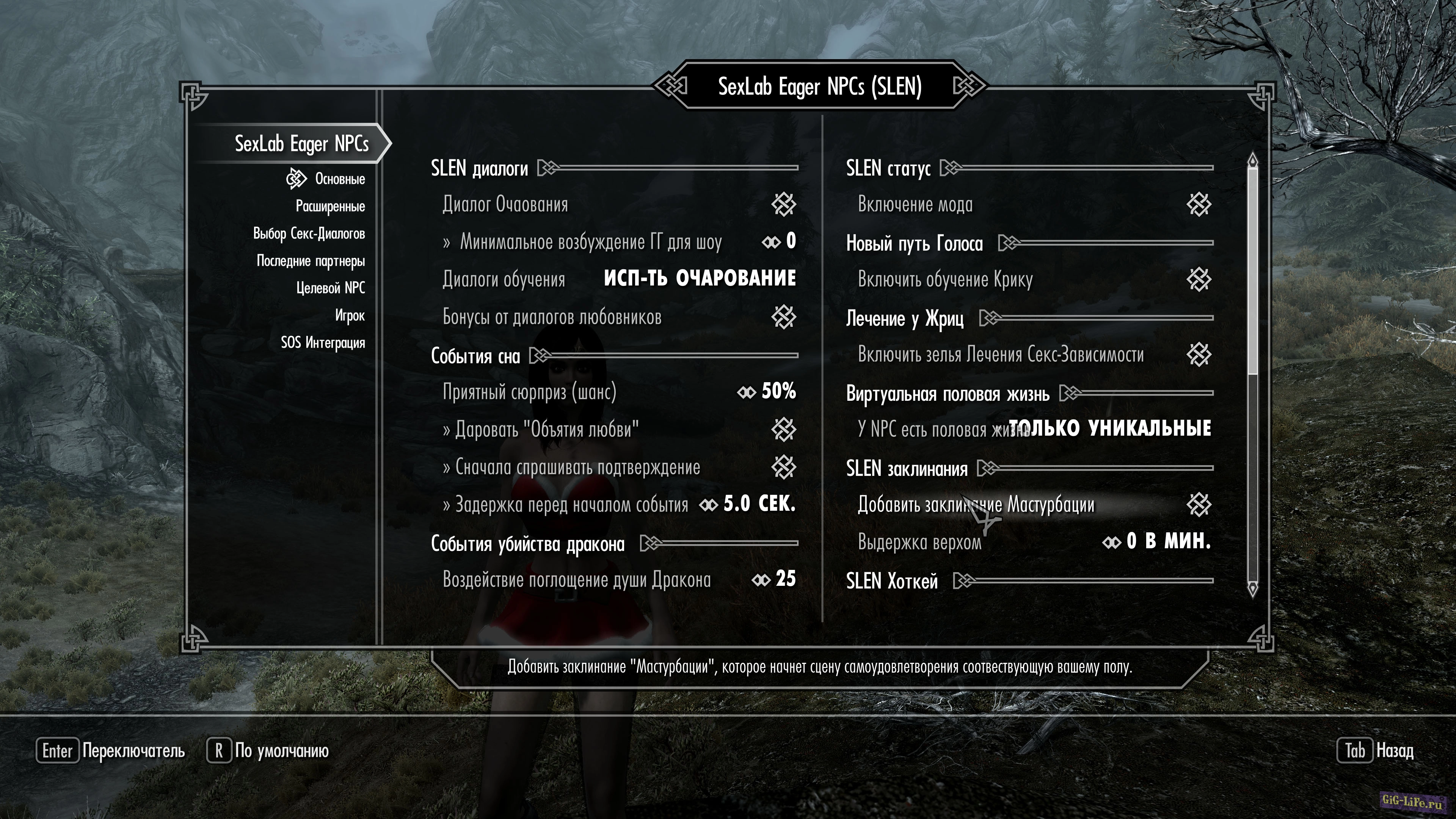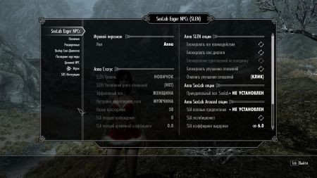 - Если SexLab Возбужденный не установлен, опция не будет отображаться. Обратите внимание, что жертвами половых актов не включены в проверку возбуждения, кто имеет право быть прыгнули на роговой РНУ и существ!