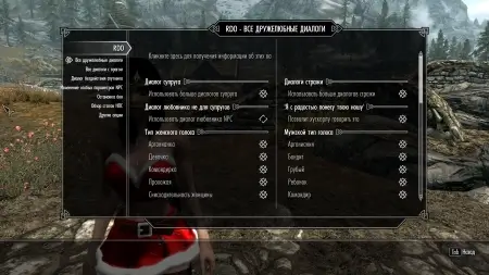 Мод добавляет в Skyrim около 5000 линий полностью озвученных диалогов. Охватывает более 50 типов голоса, основанных на отношениях, которые NPC имеют с игроком, который работает с диалогами из игры. Текст Русский, озвучка английская.
