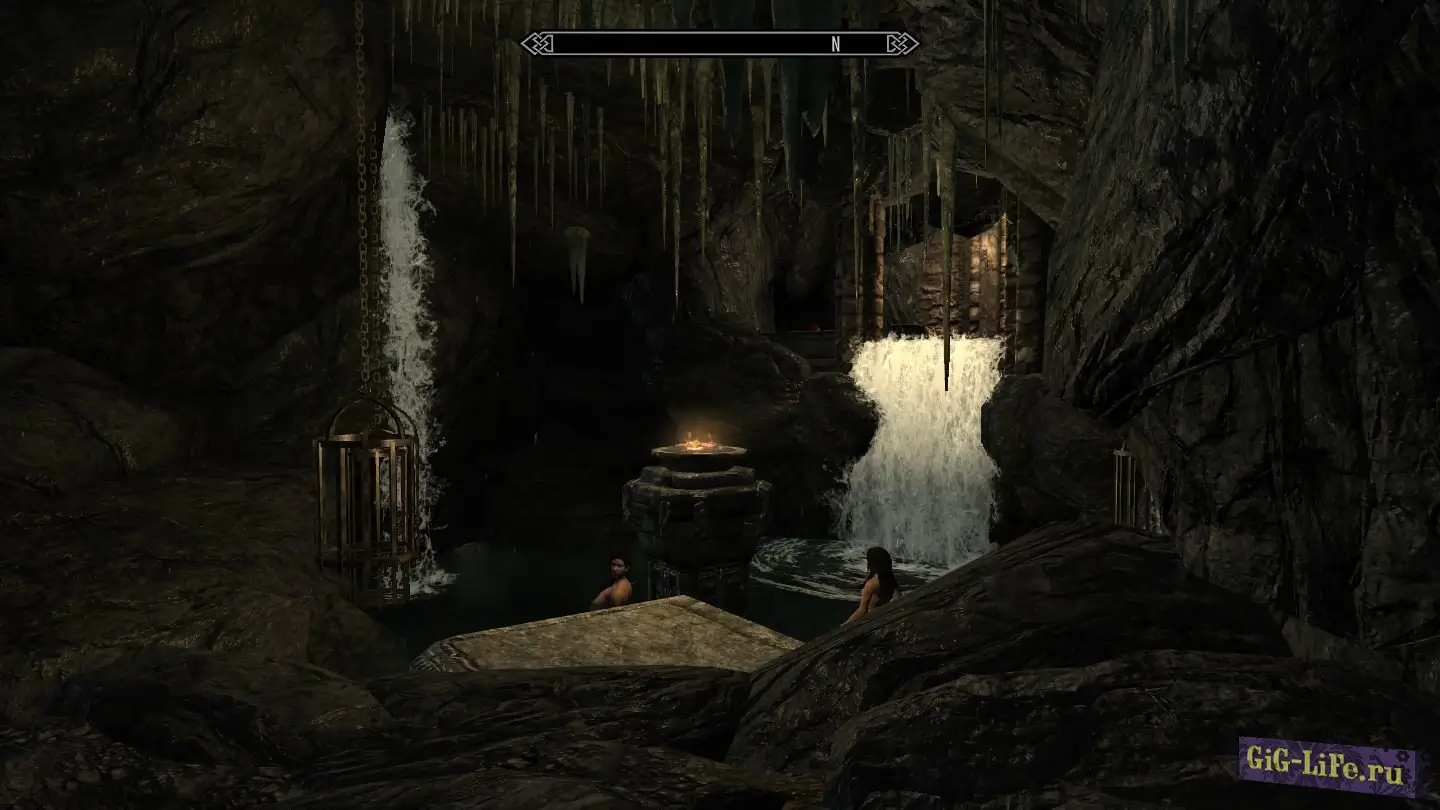 В бассейне работает автораздевание NPC (можно отключить активатором "Очистка бассейна" - корзина на полу перед бассейном).