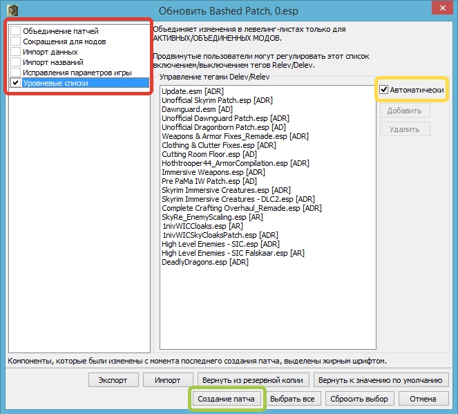 Создайте Bashed Patch с настройками, показанными на скриншоте ниже: