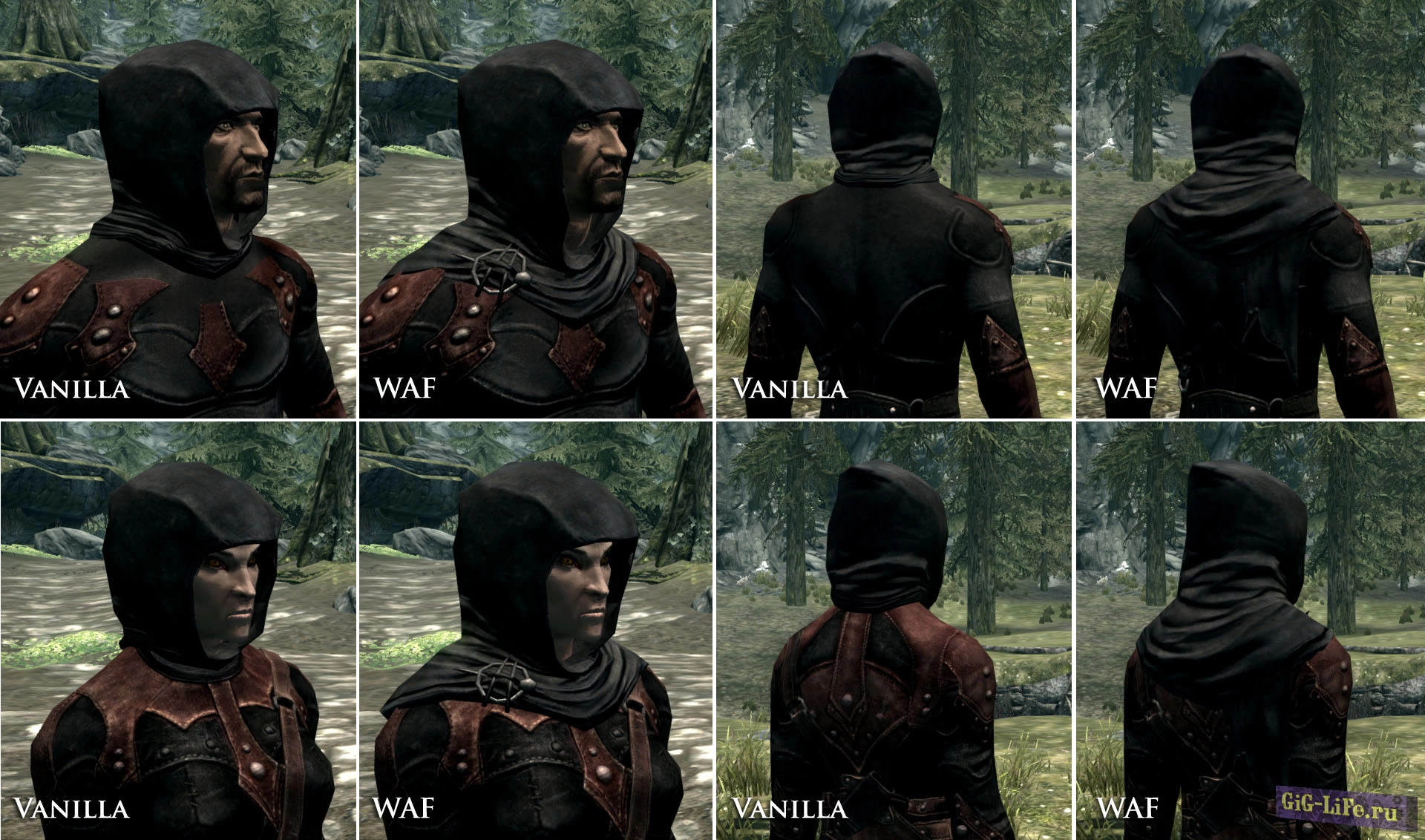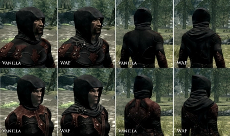 - Dark Brotherhood Mask Fix - добавляет для мужских персонажей и зверорас маски на капюшоны Темного Братства(не все, есть версия без маски).