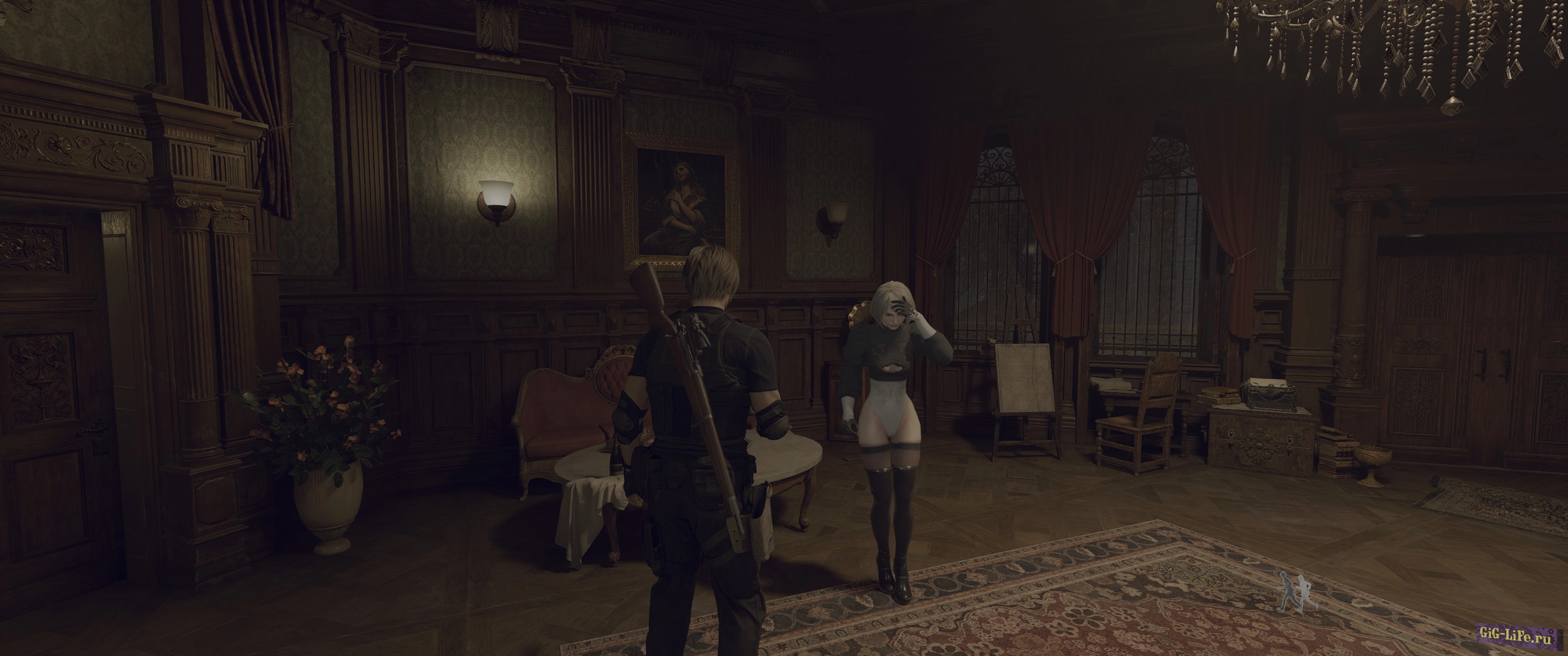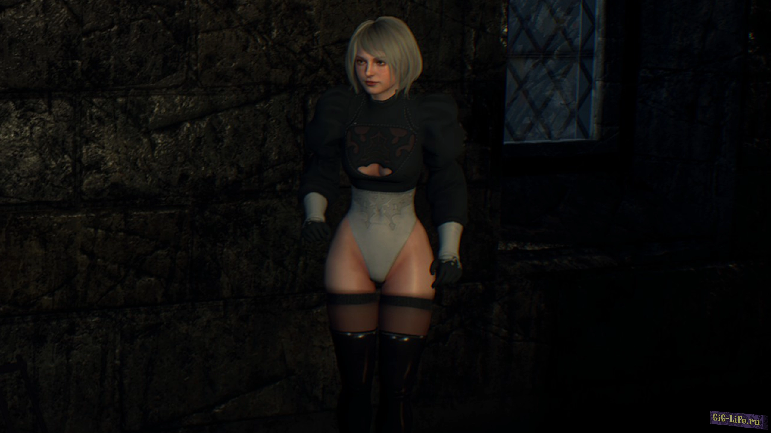 Данная модификация переодевает Эшли, заменяя её куртку на прекрасный костюм 2B из вселенной Nier Automata.
