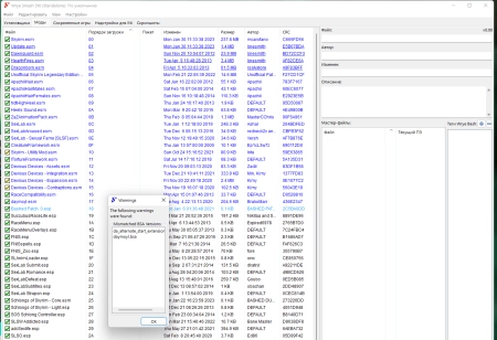- Функциональность сортировки и изменения порядка загрузки плагинов (.esp/.esm/.esl), переименовывание плагинов, оставленные комментарии от авторов, подгрузка превьюшек, требуемые и рекомендуемые плагины и многое другое.