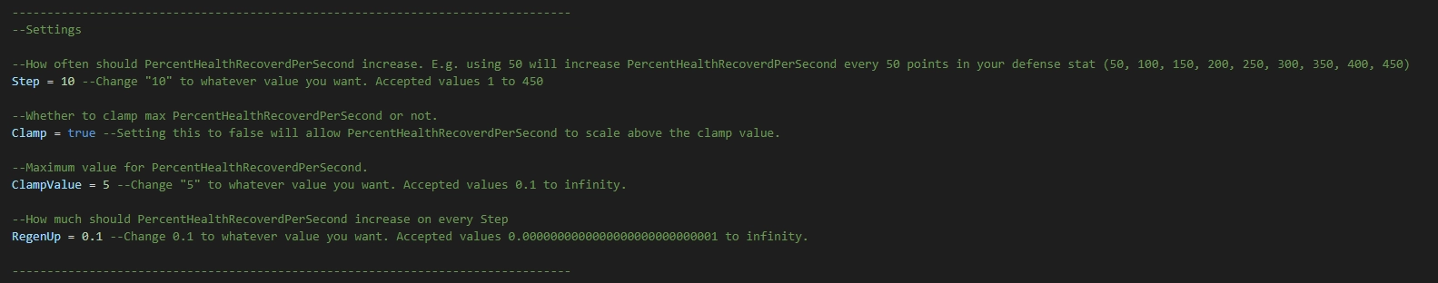 Итак, если вы хотите, чтобы процент восстановления здоровья в секунду увеличивался каждые 5 шагов, которые вы делаете:Step = 5 --Change "10" to whatever value you want. Accepted values 1 to 450