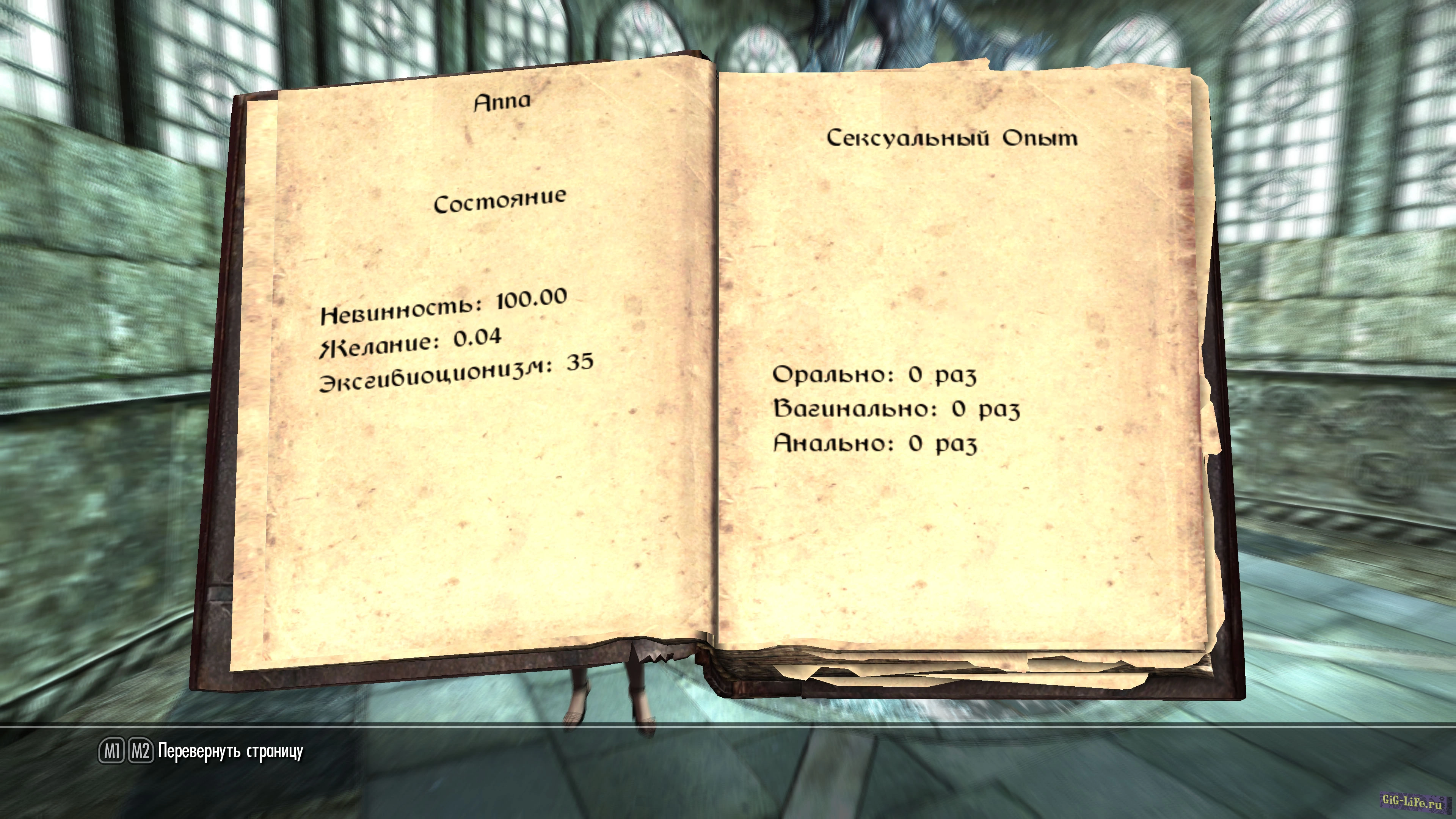 Данная модификация добавляет систему эксгибиционизма. Теперь чем дольше Ваш персонаж будет бродить в обнажённом виде, тем проще ему будет ходить обнажённым в дальнейшем. С каждым часом будет прирост за обнажённый вид, дополнительные параметры такие как возбуждение и оно будет при подглядывание за сексом прирастать, а если принять в этом участие то параметр снизится, однако так-же эти события будут зафиксированы в дневнике и будет считаться как "потеря невинности".
