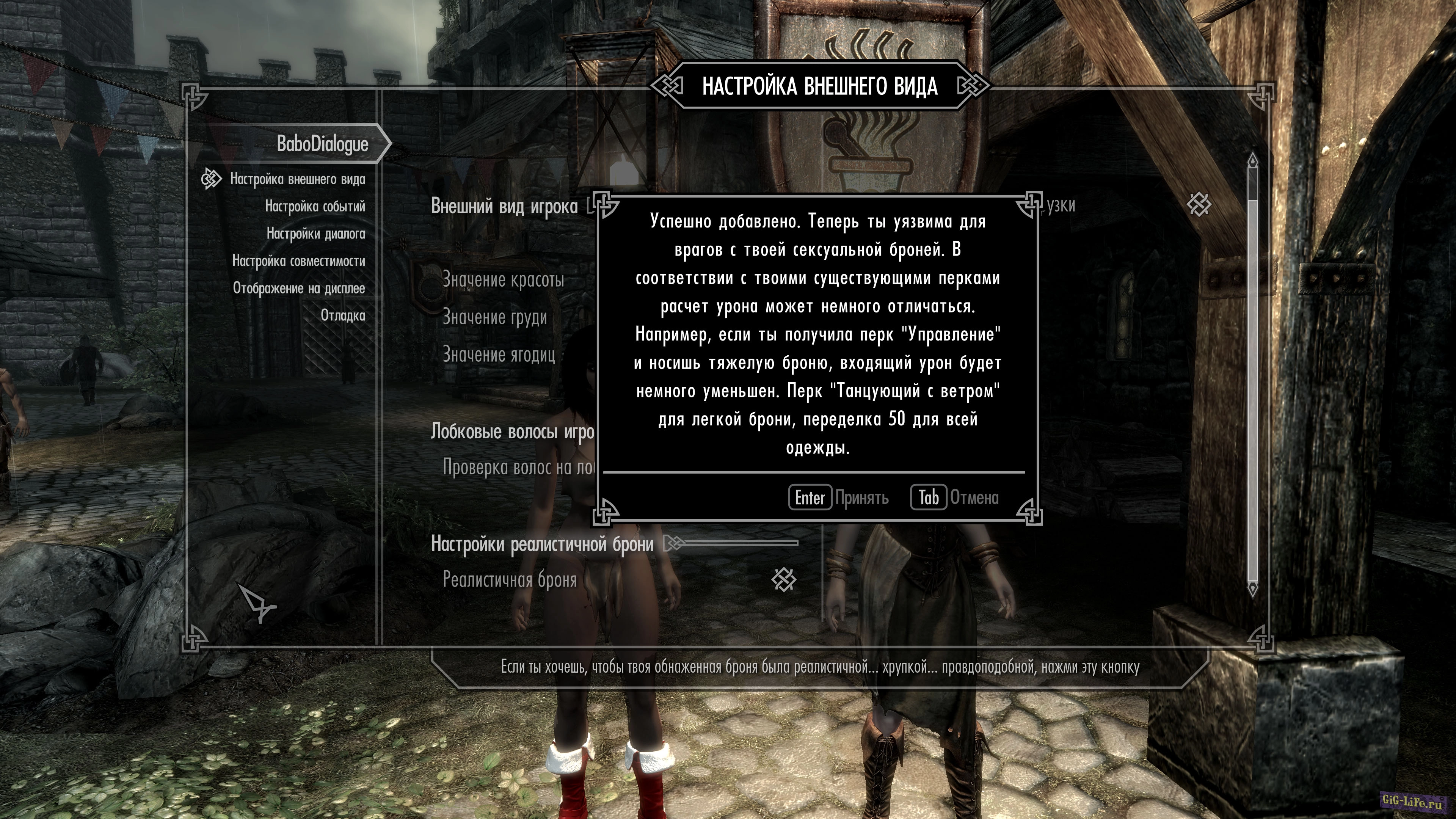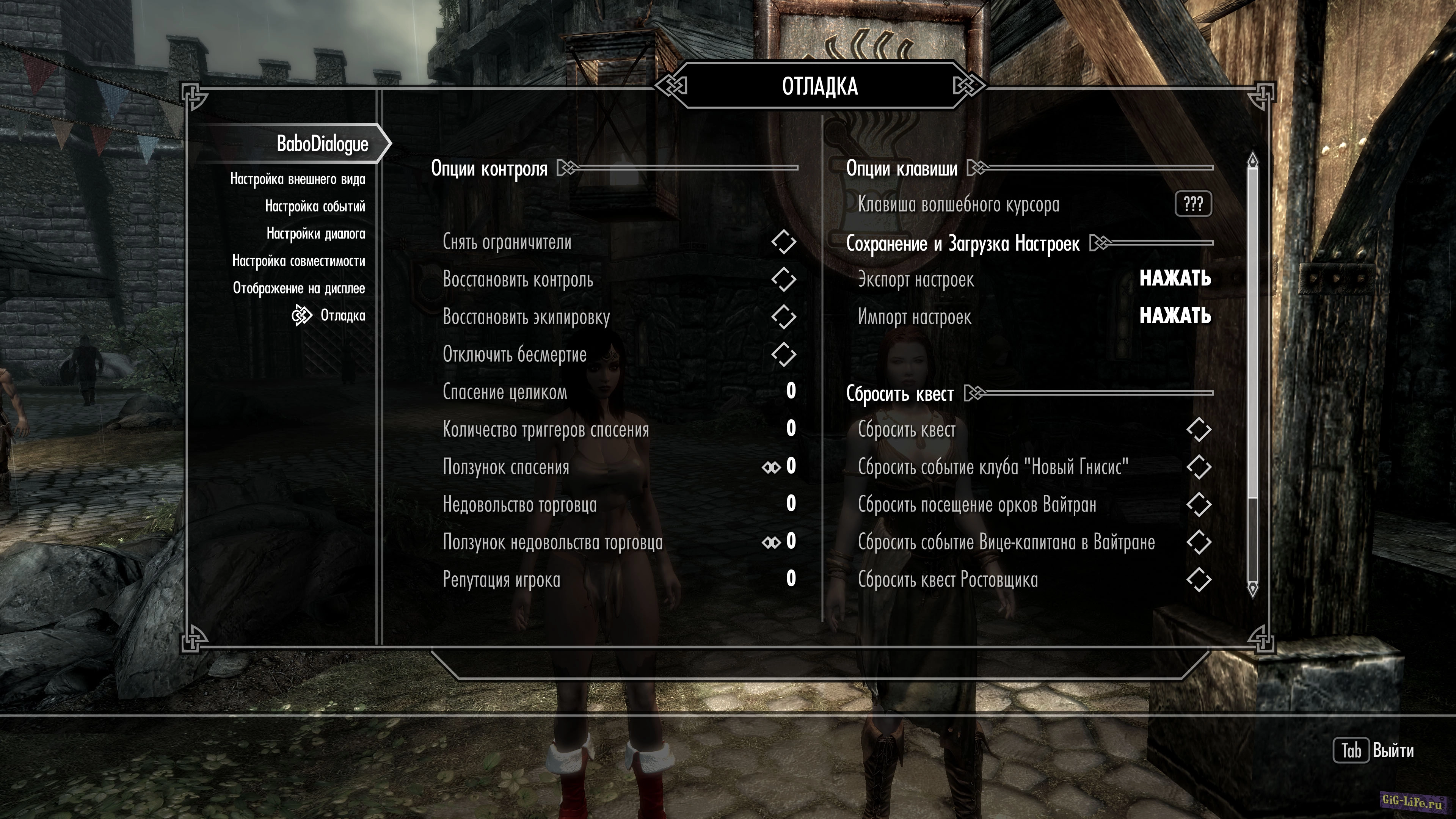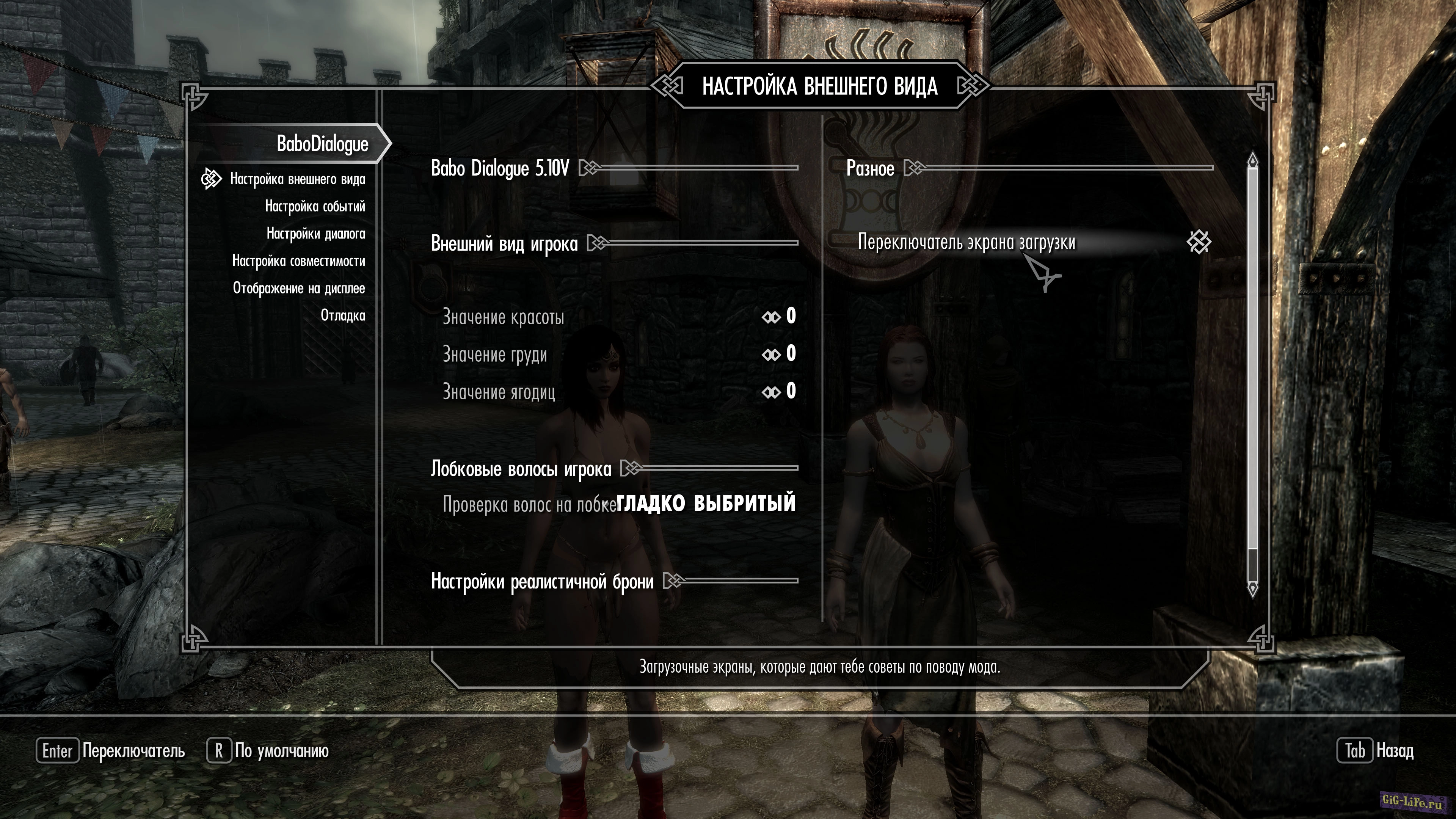 - Мод ориентирован на ЖГГ и Все функции запитаны только на женского персонажа.