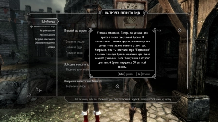 Конечная цель мода - улучшить общую реальность и погружение в Skyrim. Что касается всевозможных элементов погружения, то мод нацелен именно на случайные диалоговые линии и различные события, которые потенциально и в целом заинтересуют Вас, а так-же помогут вжиться именно в женскую роль!