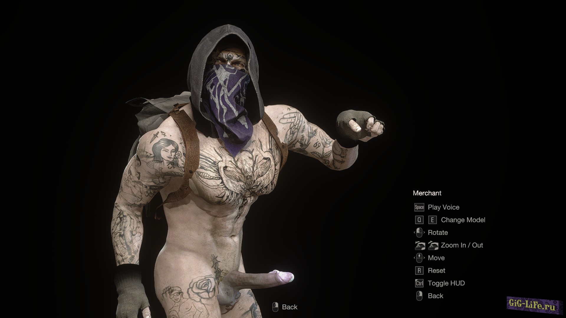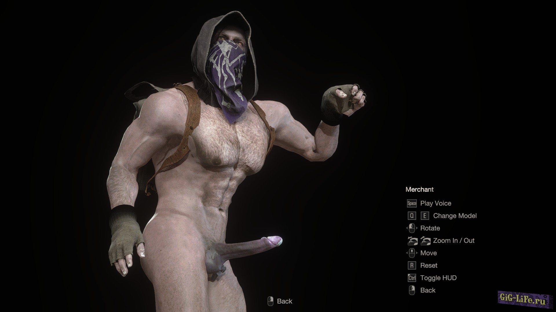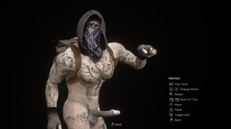 Данная модификация заменяет торговца на обнажённую модель с анимацией эрекции. Теперь когда Вы придёте что-бы прикупить снаряжение или продать ненужный хлам, то Вас встретит мощный татуированный (или нет (зависит от Вашего выбора)) торговец.