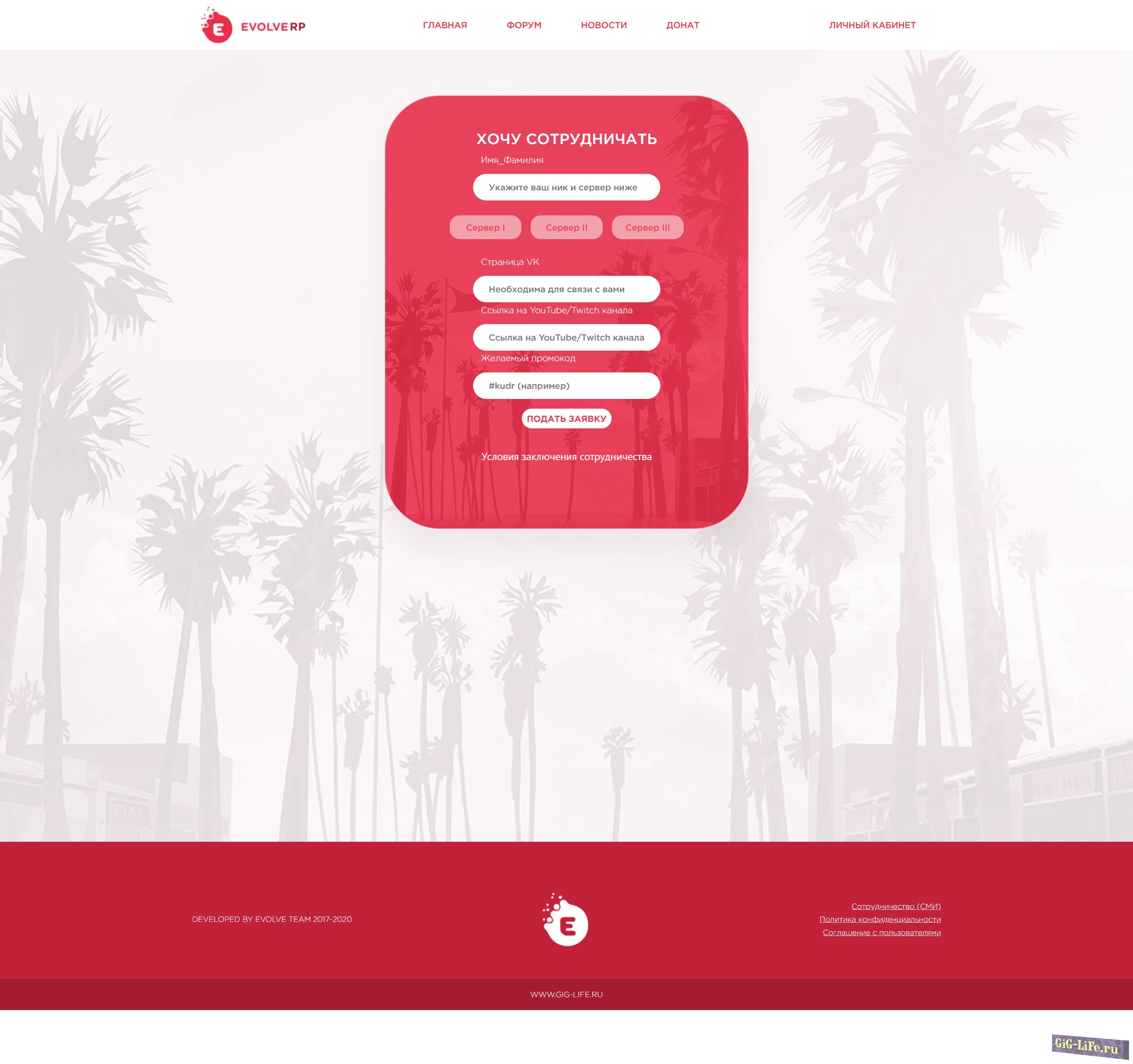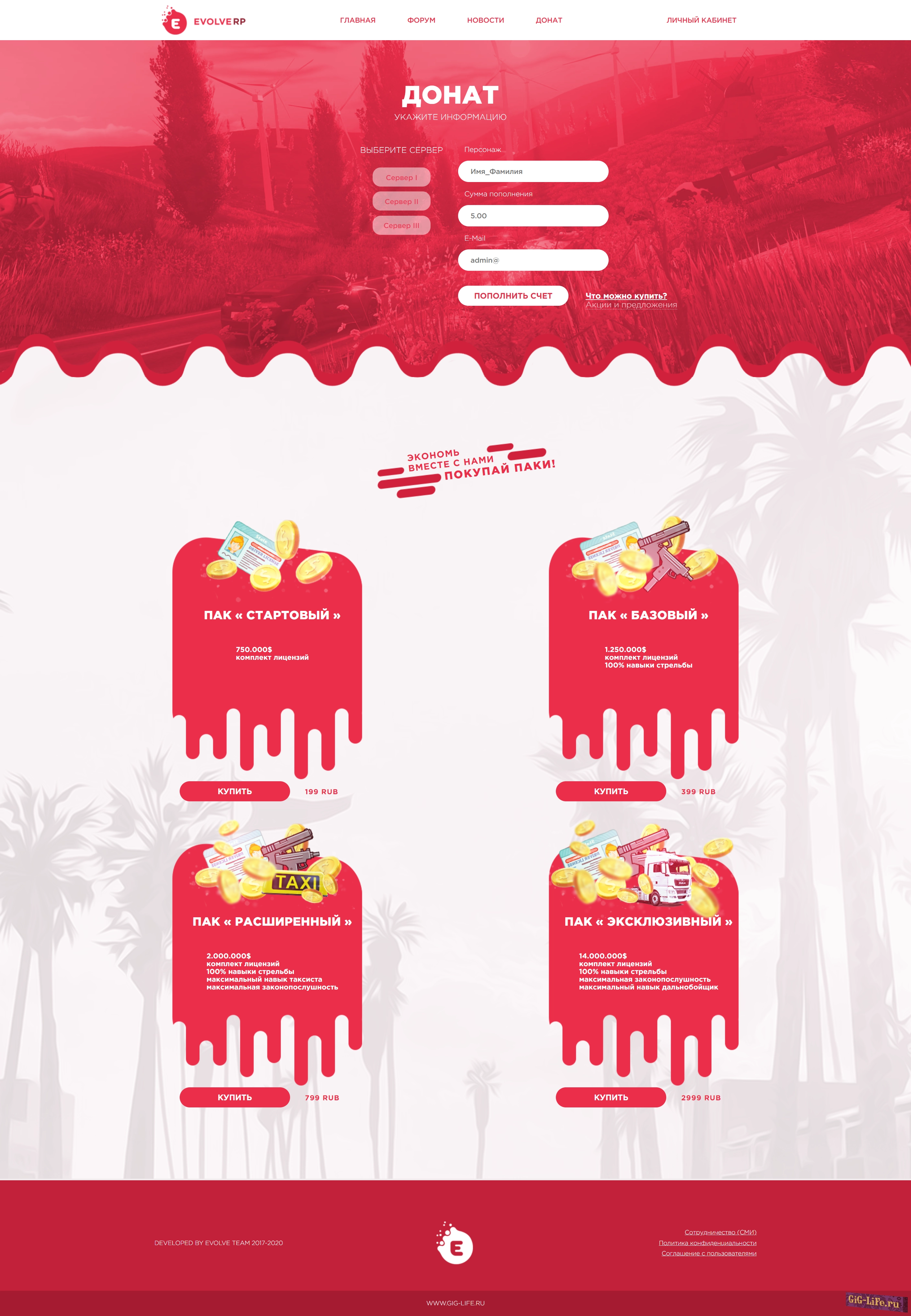 Рип шаблона Evole для проектов SAMP, CRMP который качественно выполнен со всеми элементами. Дизайн разработан в светлом бело-красном стиле.