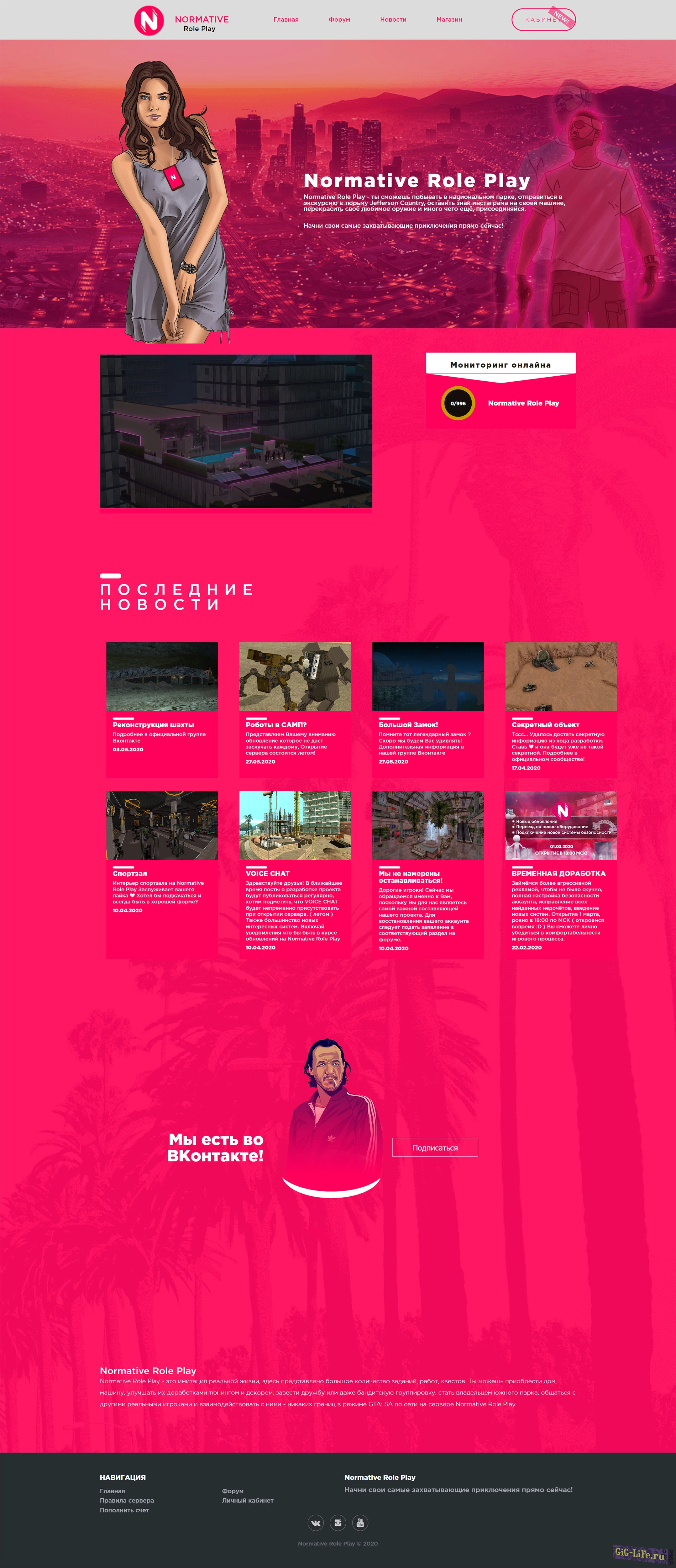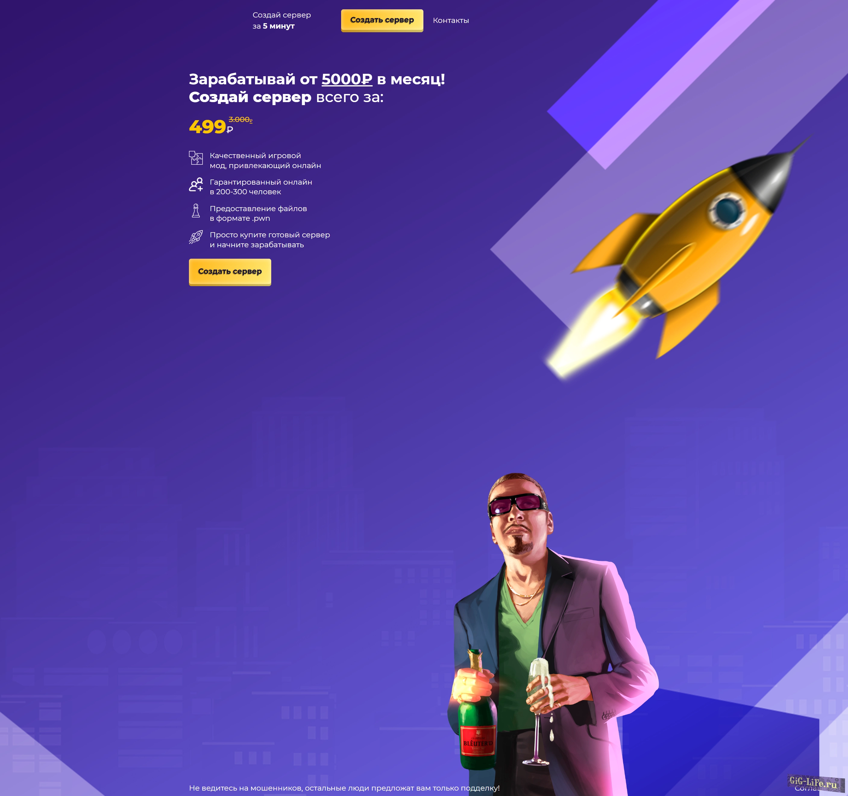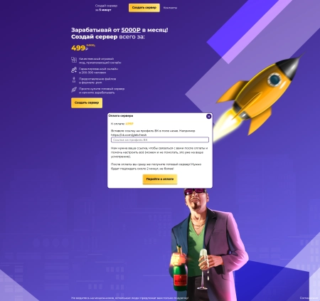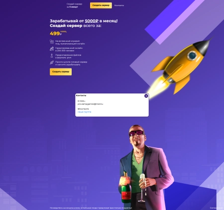 Одностраничный игровой шаблон исполненный в фиолетовом стили который в своём функциональном составляющем при нажатии на определённые пункты меню открывает дополнительные окна с дополнительной информацией.