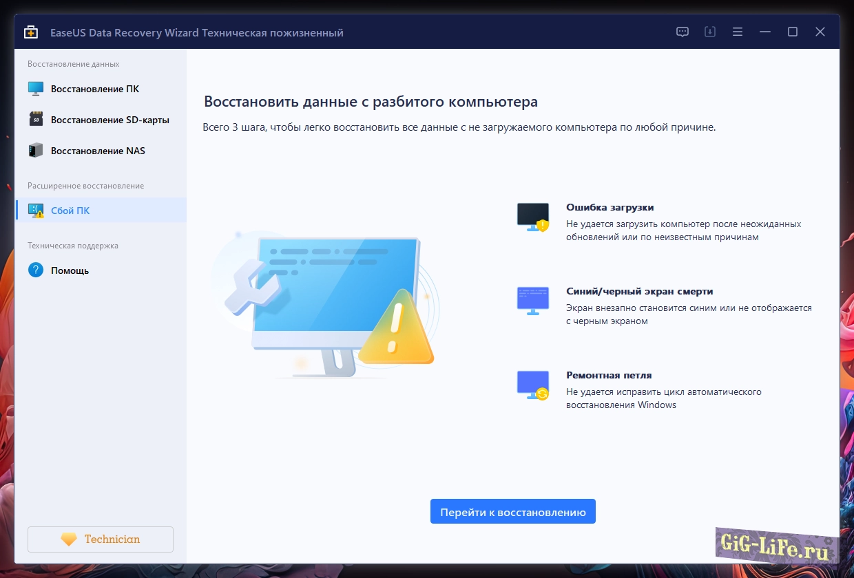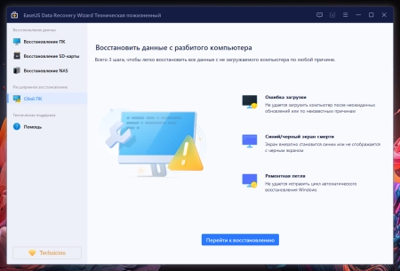 - Если система Windows не загружается, вы не можете получить доступ к своим файлам. EaseUS предоставляет альтернативную загрузочную среду на базе WinPE, которая поможет восстановит доступ к данным.