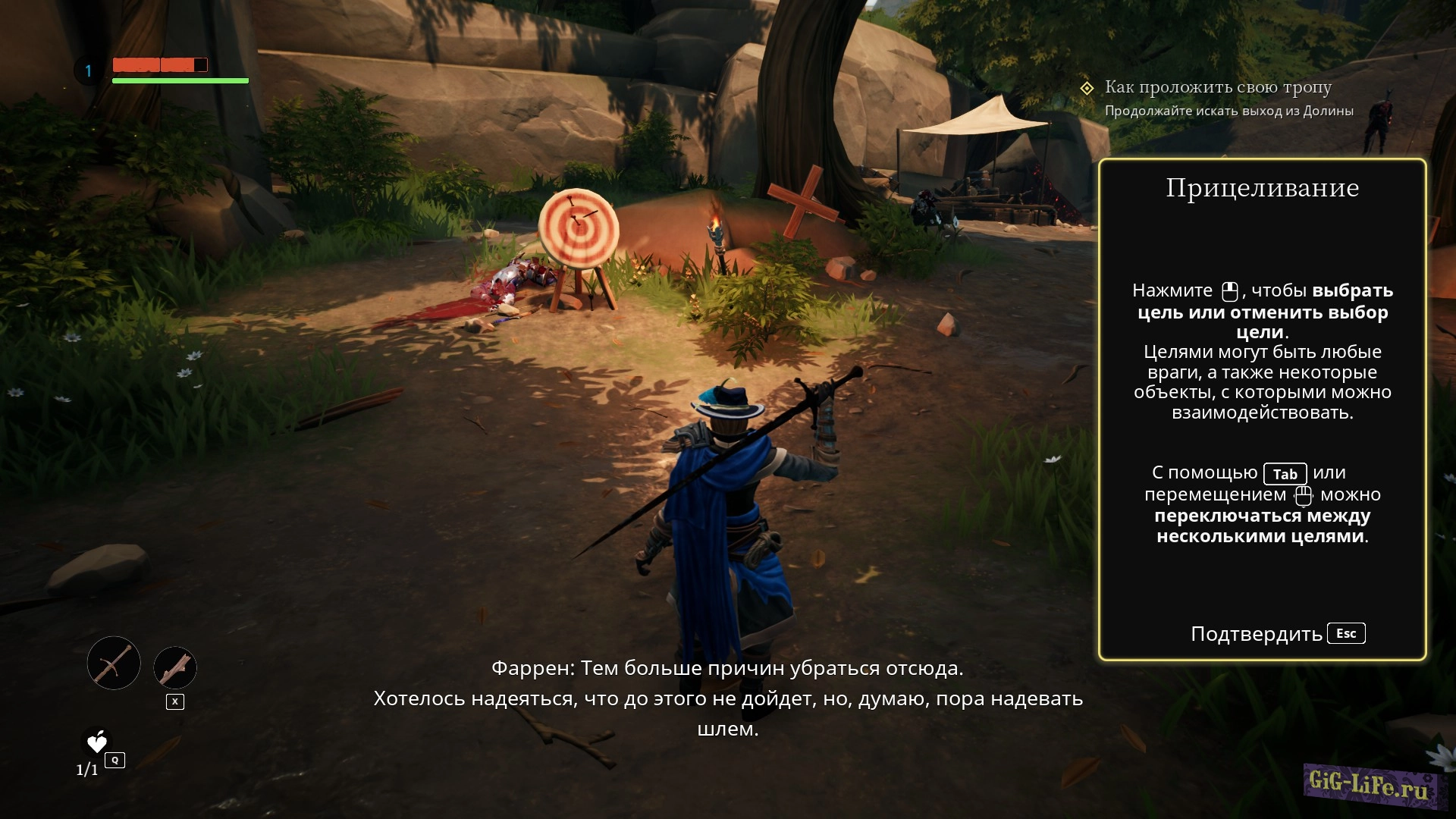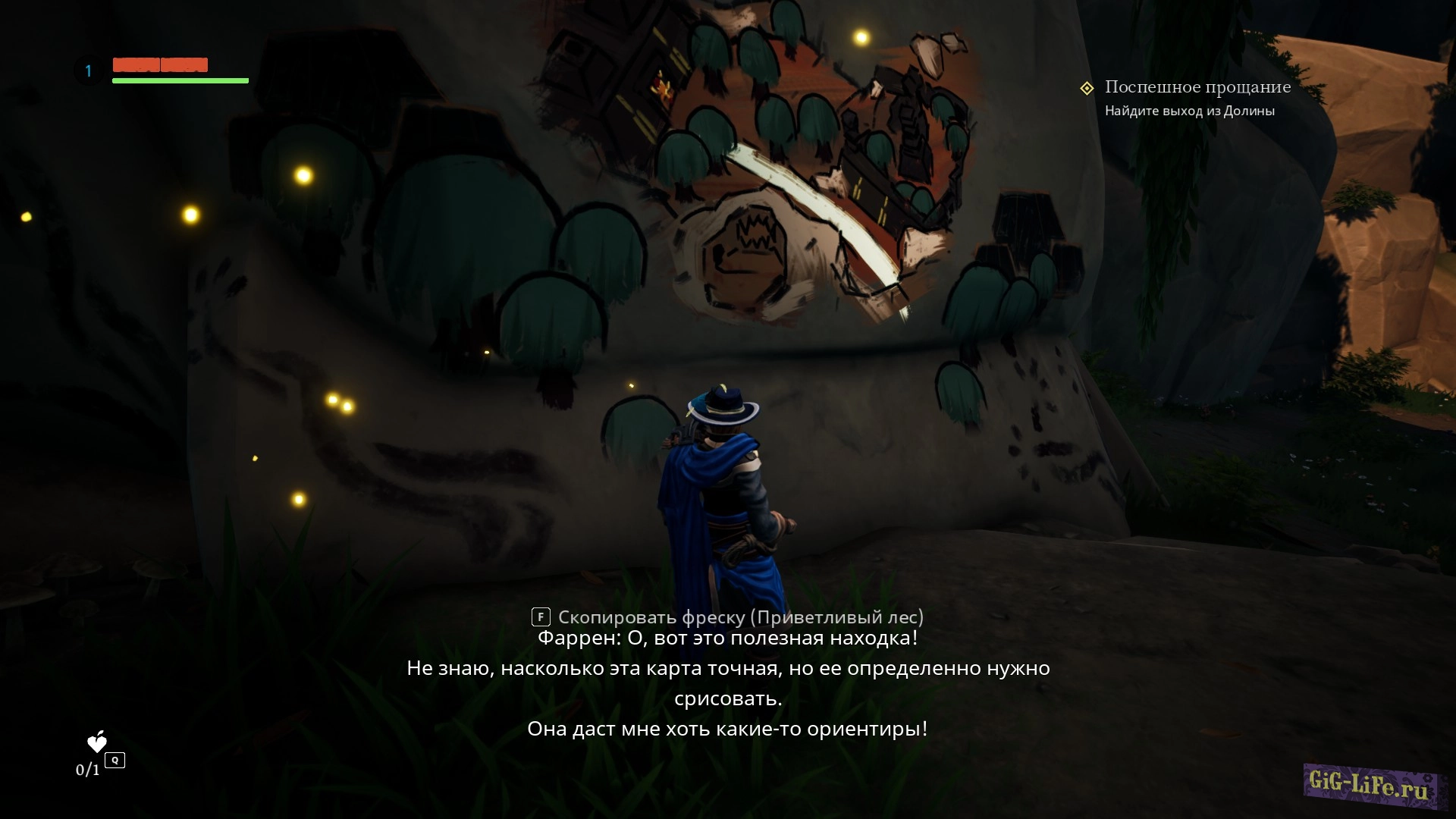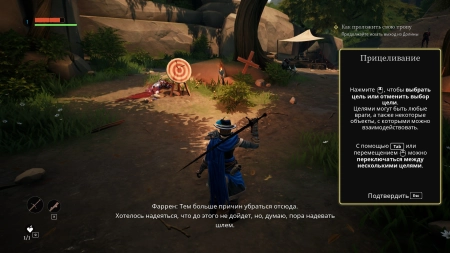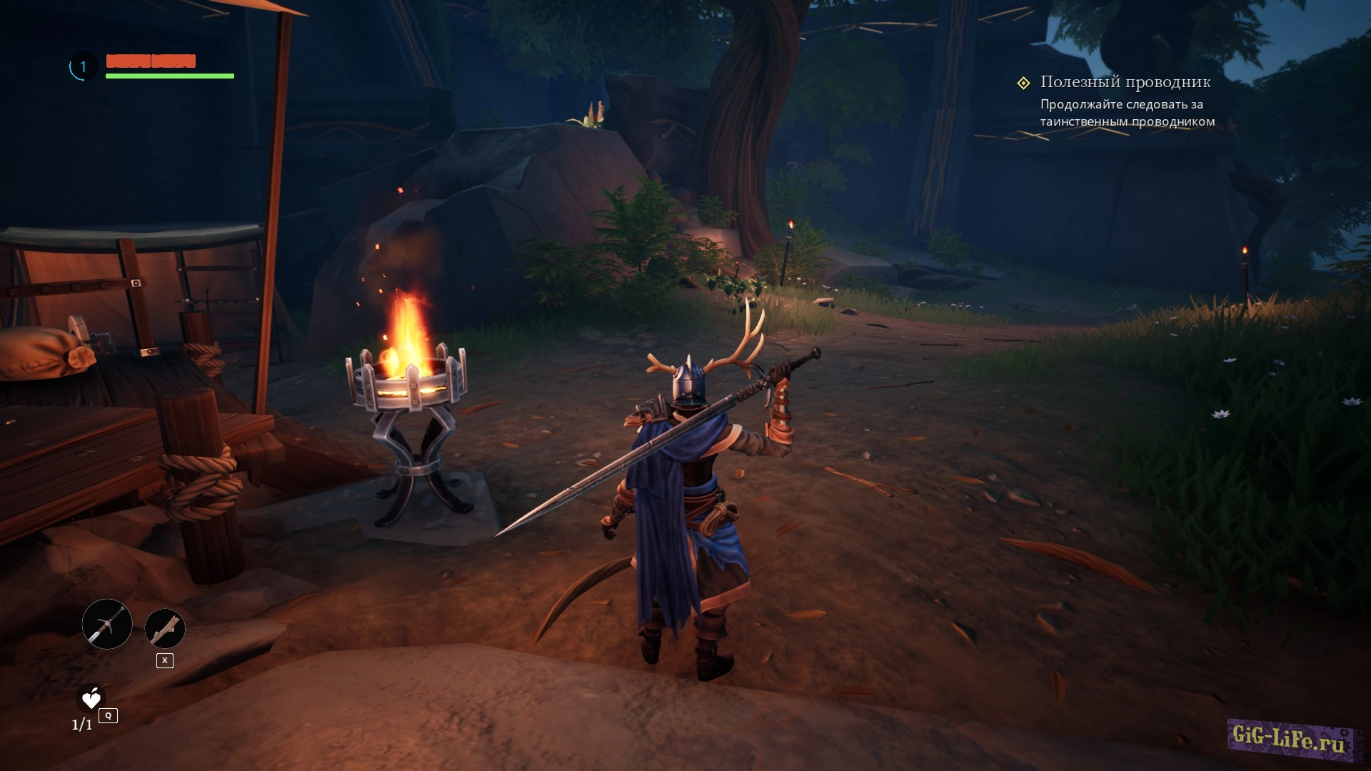 Играем за некоего приключенца (мужчину или женщину), в начале - ходим по какому-то каньону и деремся с рыцарями каких-то враждующих группировок. У нашего приключенца есть 2 атаки, парирование и уворот (нужно указывать направление и он не особенно эффективен). Даже всего один противник может вас прибить, если пропустите парирование/уворот. Это работает в обе стороны - удачная серия атак позволяет добить противника, даже если его прочность ещё не позволяет убить его обычным ударом. За сим драки выглядят довольно честными, то есть исход драки 50/50, по крайней мере я гулял от костра регулярно, пока делал скриншоты. Есть костры как в одной игре про хождение по темным пространствам с 15 фпс. Кроме этого в игре есть крафт, лазание, какие-то травы и поиск секретов за разрубаемыми кустами или на возвышениях. Для игры вышло пару патчей, но какая версия у Fairlight не ясно.