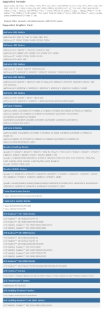 - поддержка MPEG1; MPEG2; MPEG4 (DivX4/DivX5); WMV7; WMV8; H263(+); MJPEG; ; DV; Huff YUV; On2 VP3; MPEG audio layer 2; MPEG audio layer 1/3; AC3; Vorbis; WMA; AAC; Microsoft ADPCM; G.726 ADPCM; DV audio; FLAC и других аудио и видео кодеков