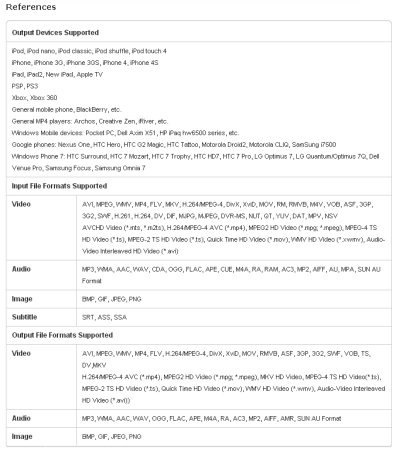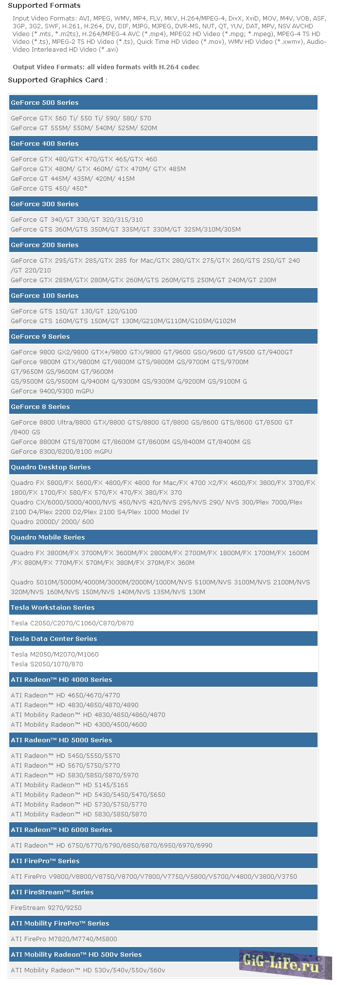 - поддерживает кодирования и декодирования HD видео, как HD AVI, HD MPEG2, HD MPEG2 TS, HD MPEG4, WMV HD, HD VOB, HD ASF, H.264/MPEG-4 AVC, AVCHD (*. M2TS, *. МТС), MKV, WMV HD, MPEG2/MPEG-4 TS HD и т.д.