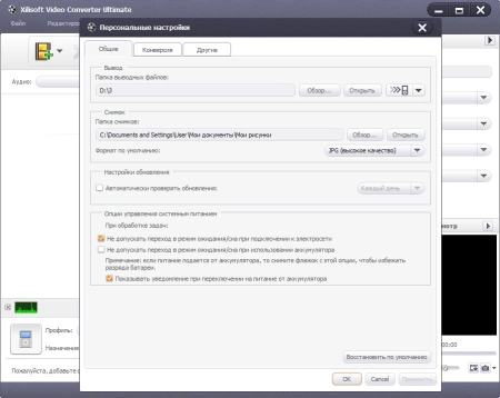 - выбор и настройка параметров конвертирования(яркость,контрастность,насыщенность и тд)