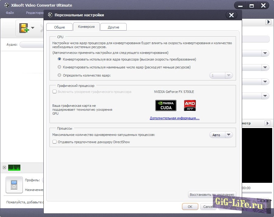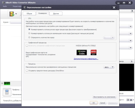 - Конвертация видео на очень высокой скорости - Конвертируйте видео за считанные секунды при помощи процессинга ЦП и задавайте число ядер для конвертации, чтобы настраивать скорость конвертации.