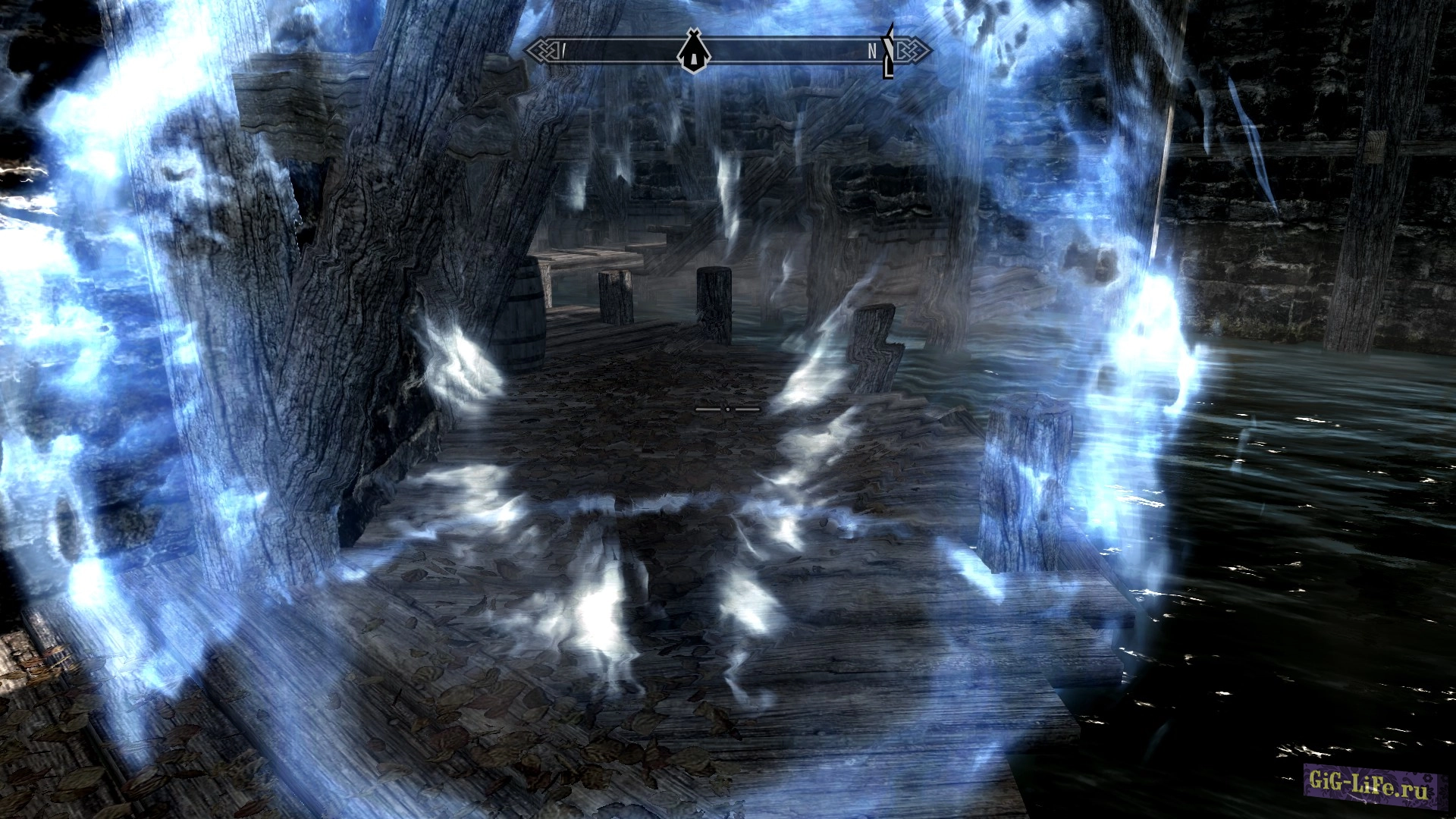 - выберите вид от 3-го лица, введите в консоли: player.addspell 000f71d1